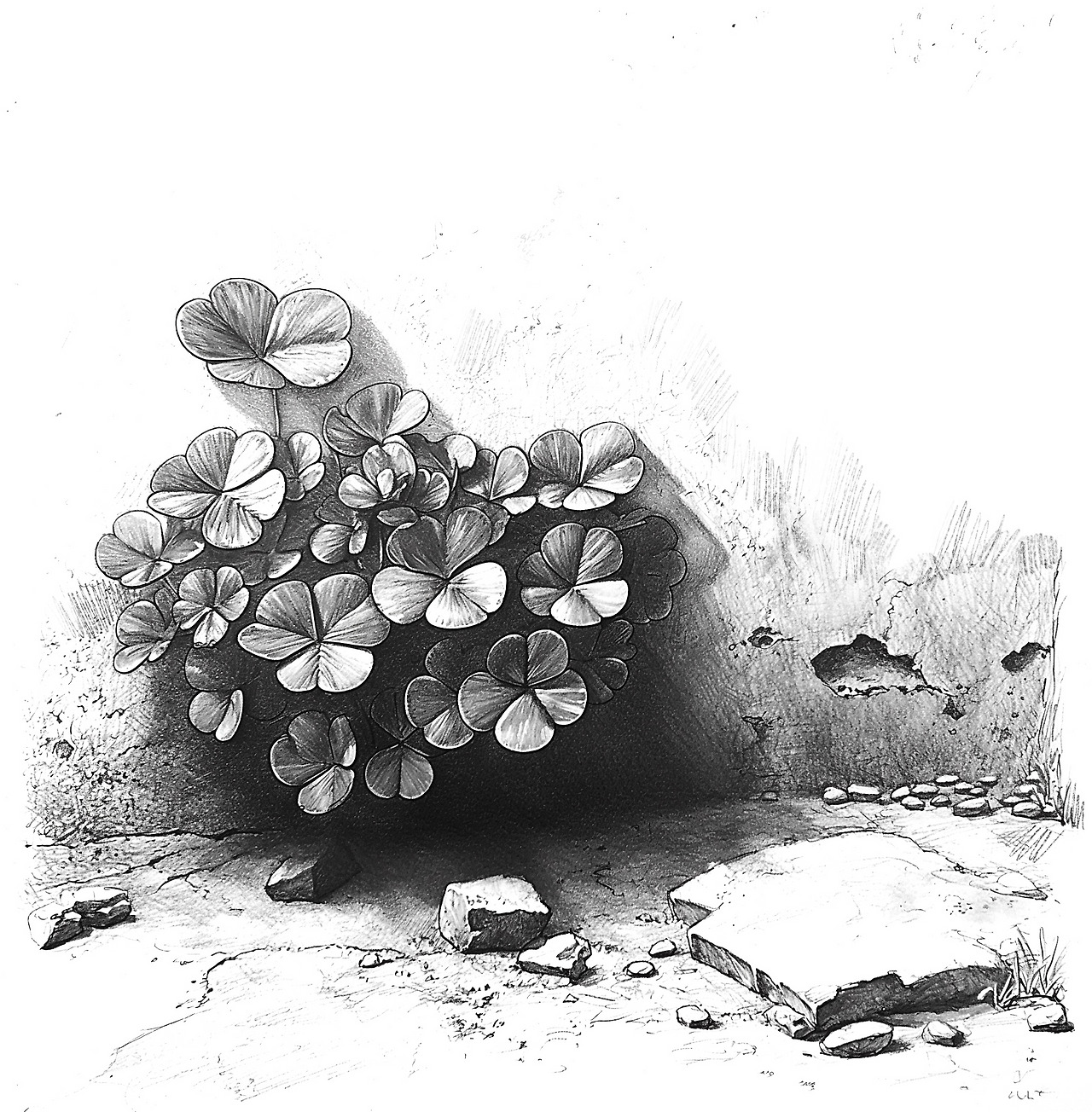 "와... 신기하다. 세잎클로버 봐. 저 틈새에 어쩜 저렇게 자랐을까? 저기 행운의 네잎클로버 있을 것 같지 않아?"