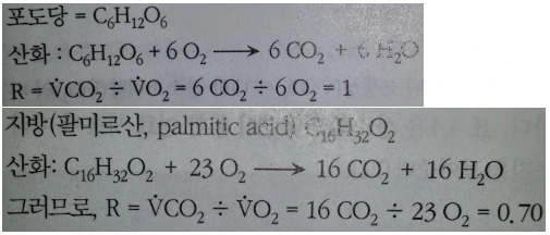 파워운동생리학 8판 75~76page 포도당과 지방의 화학 반응식