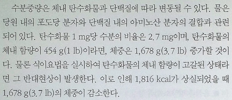 또 한가지 알아야 되는 사실은 탄수화물은 1g당 2.7g의 수분과 결합하고 있습니다.