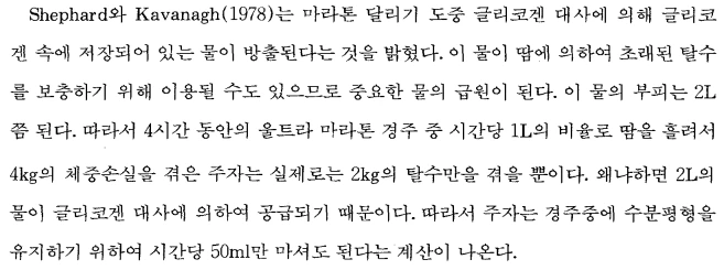 그래도 여전히 운동 중 흘리는 땀은 이 계산에서 나온 2,002g~2,065g의 수분에 포함되는가라는 의문에 대한 해답으로는 부족합니다.