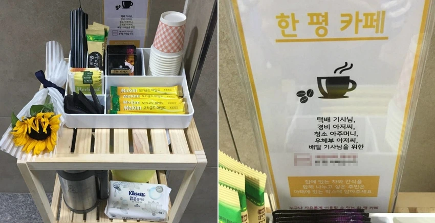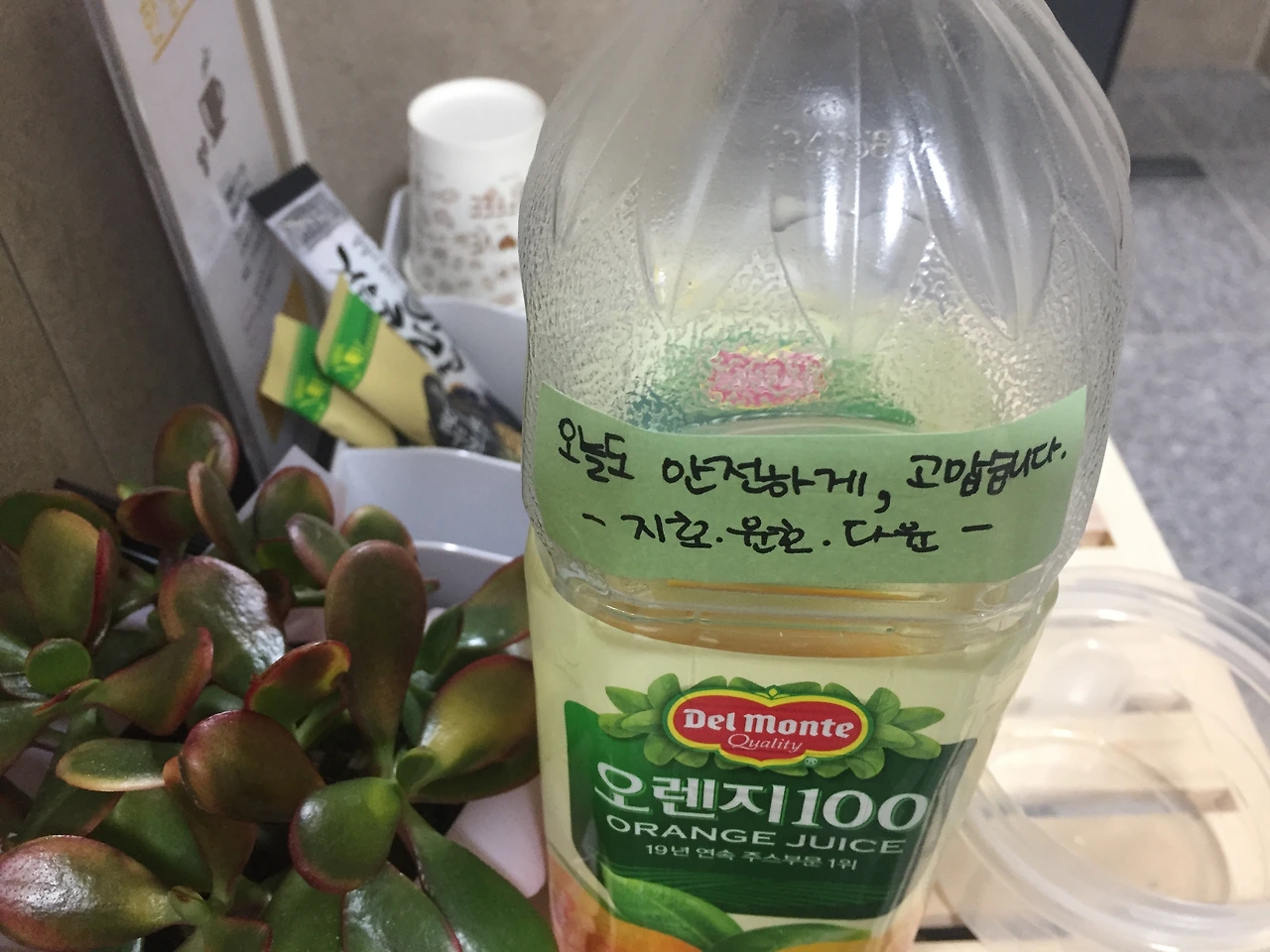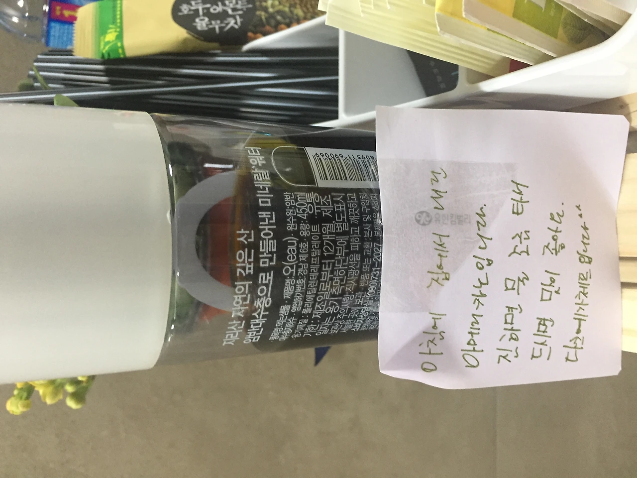 “여보, 우리 집 앞에 커피나 물을 놓아두고 택배원이나 경비 아저씨가 드실 수 있게 하면 어떨까?”