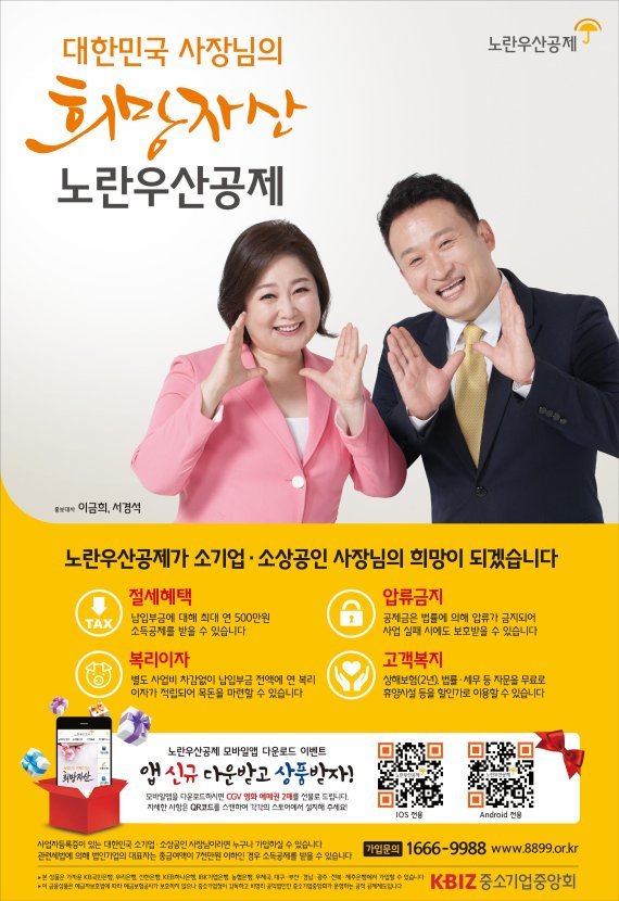 방송인 이금희씨와 서경석씨가 광고하고 있는 노란우산공제이다.