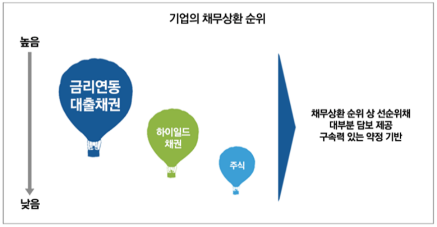1) 대출받은 기업들의 부도 발생 시 먼저 변제받을 수 있는 선순위에 있고 상대적인 안정성을 확보하고 있으며