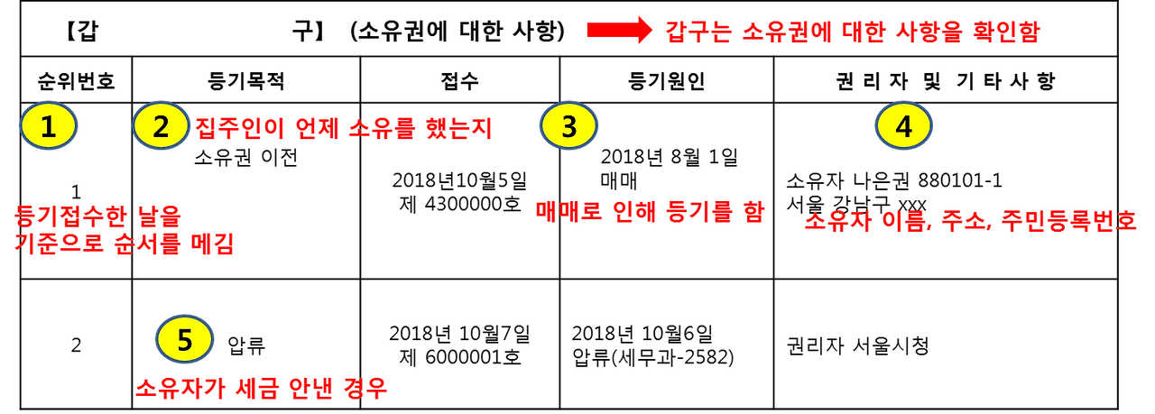 - 갑구에서는 부동산의 소유자 누군지 확인이 가능하다.