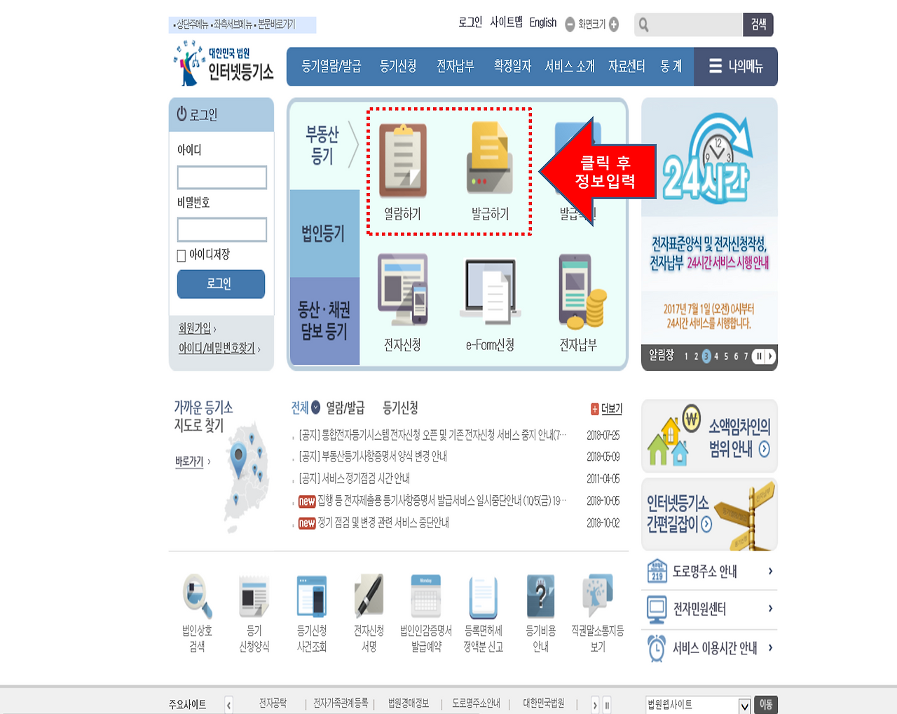 부동산주소를 알고 있다면 대법인인터넷 등기소 접속을 통해 누구나 쉽게 발급이 가능하다.