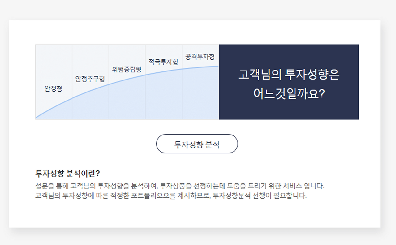 설문을 통해 제일 낮은 안정형에서 가장 높은 공격투자형까지