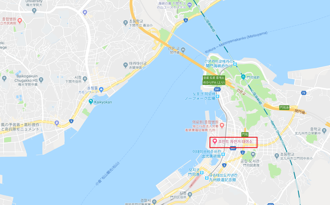 자전거는 모지코 전망대 바로 옆에 있는 대여소에서 5천원에 빌렸다. 시모노세키까지 타고 가려면 간몬 터널을 지나거나 배를 타야 하지만, 그럴 만한 가치 충만하다. 전기자전거라 대충 밟아도 쭉쭉 가니 꼭 빌려서 타자.