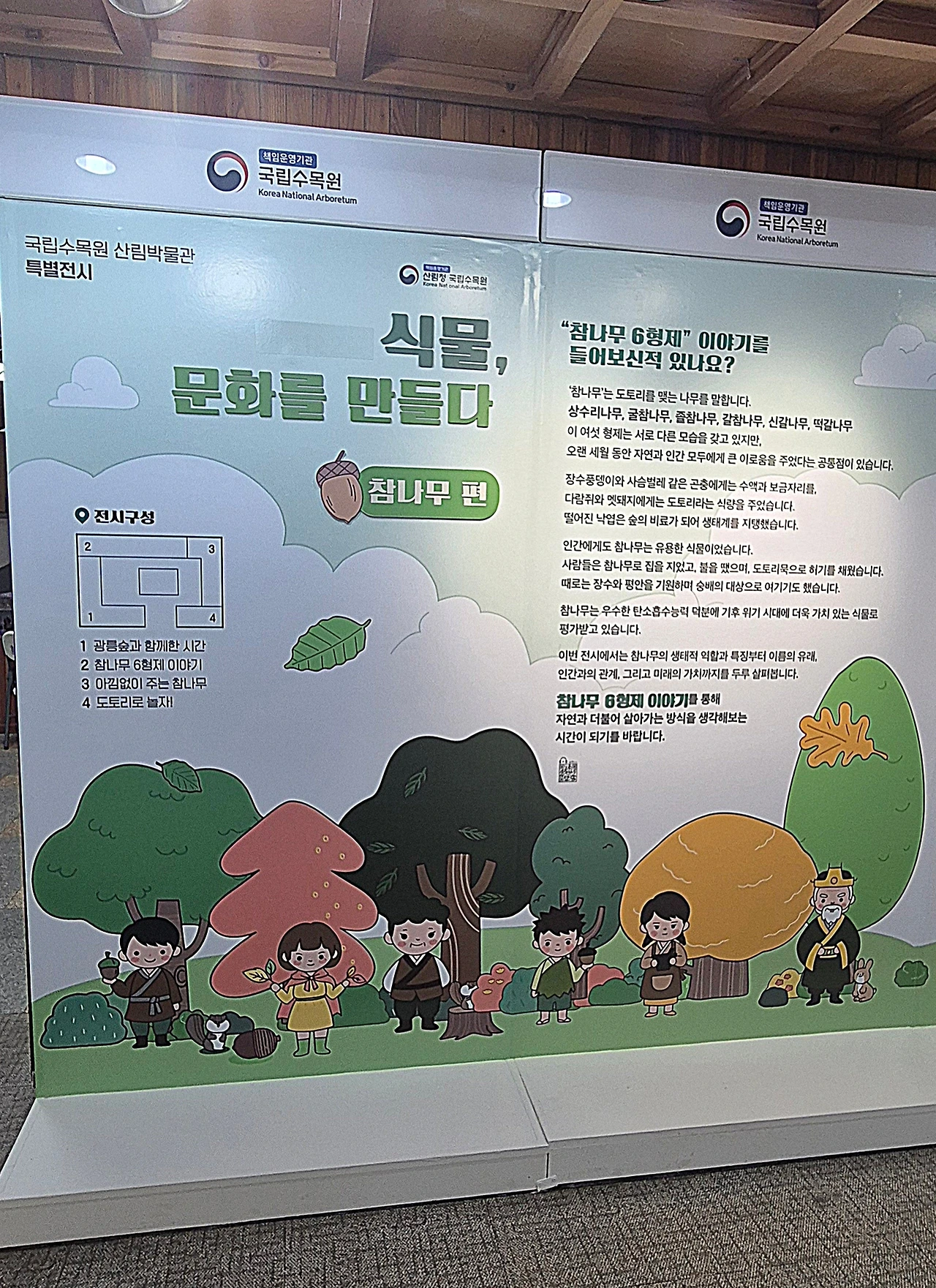 산림박물관은 국립수목원에 있는 나무들의 역사와 생태계에서의 역할, 우리 생활 속에서의 쓰임새 등이 기록되고 전시되어 있는 곳이다. 지금 1층에는 참나무 특별관이 열려 있다.