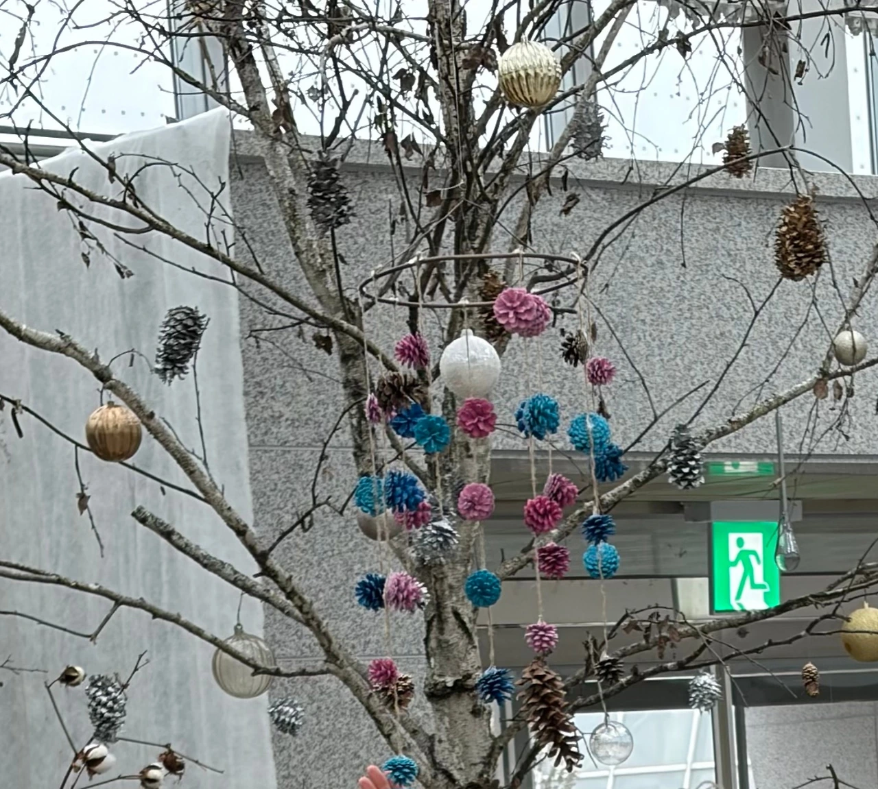 라운지 복도에는 여러 가지 조형물이 전시되어 있는데 솔방울을 물들여 만든 장식품이 예뻤다.