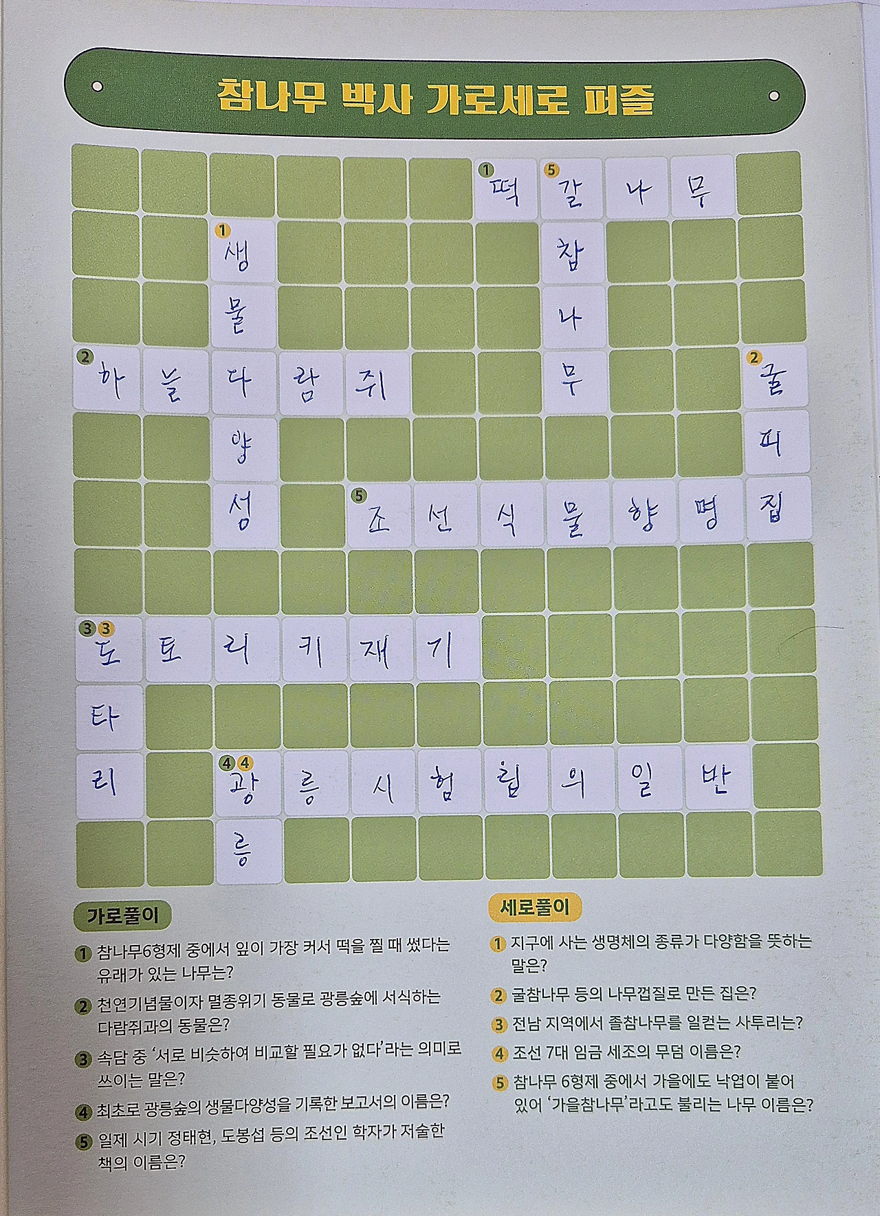 한 것이 별로 없어서 받아온 활동지로 참나무에 관한 퀴즈를 풀어보았다. 꽤 어렵다.