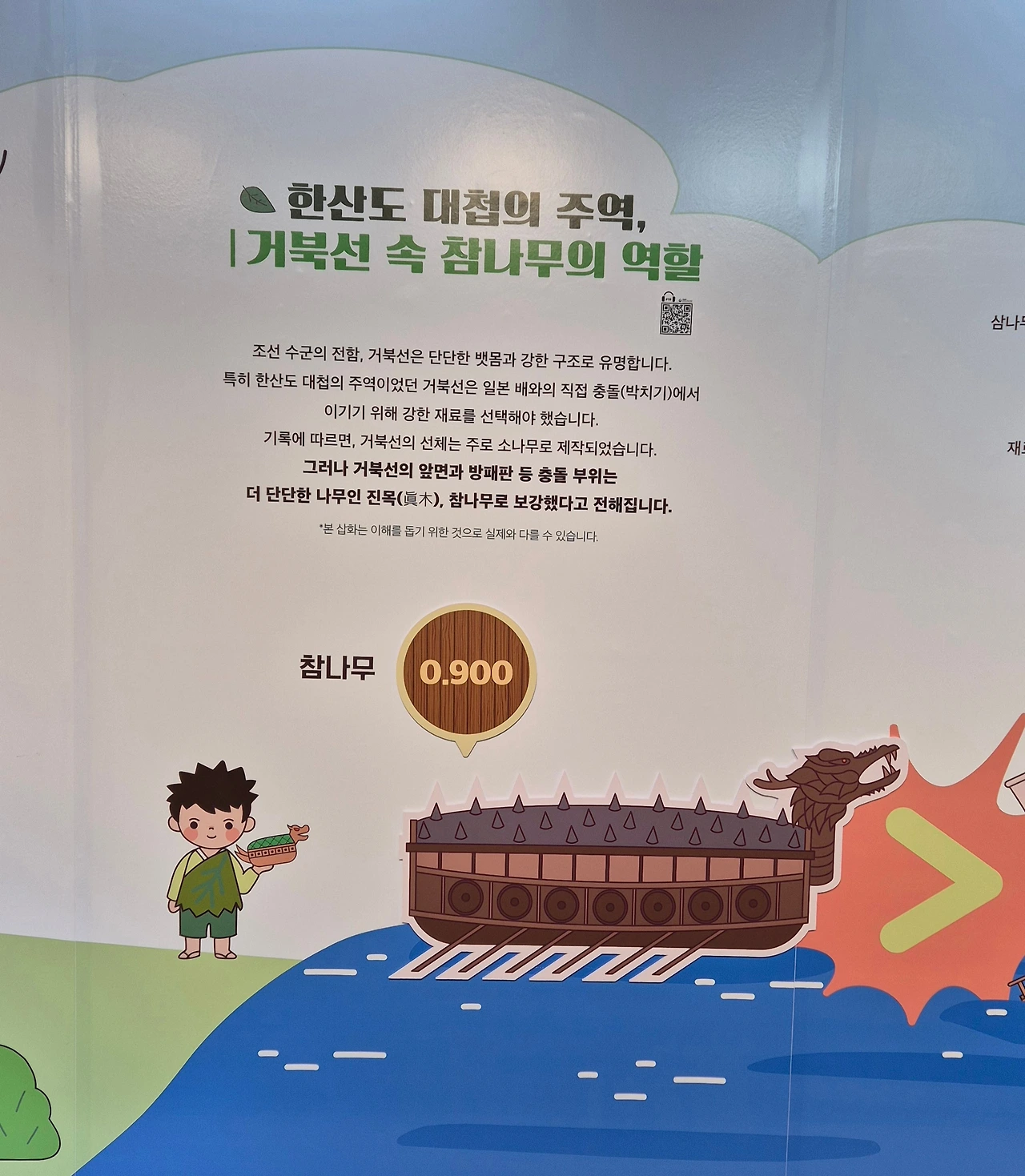 거북선의 앞면과 방패판 등 충돌 부위는 단단한 참나무로 보강했다고 한다