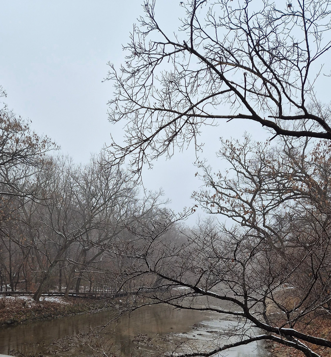 산책하기에 좋지 않았다. 내린 비가 살얼음을 만든 곳도 있어 조심스러웠다.