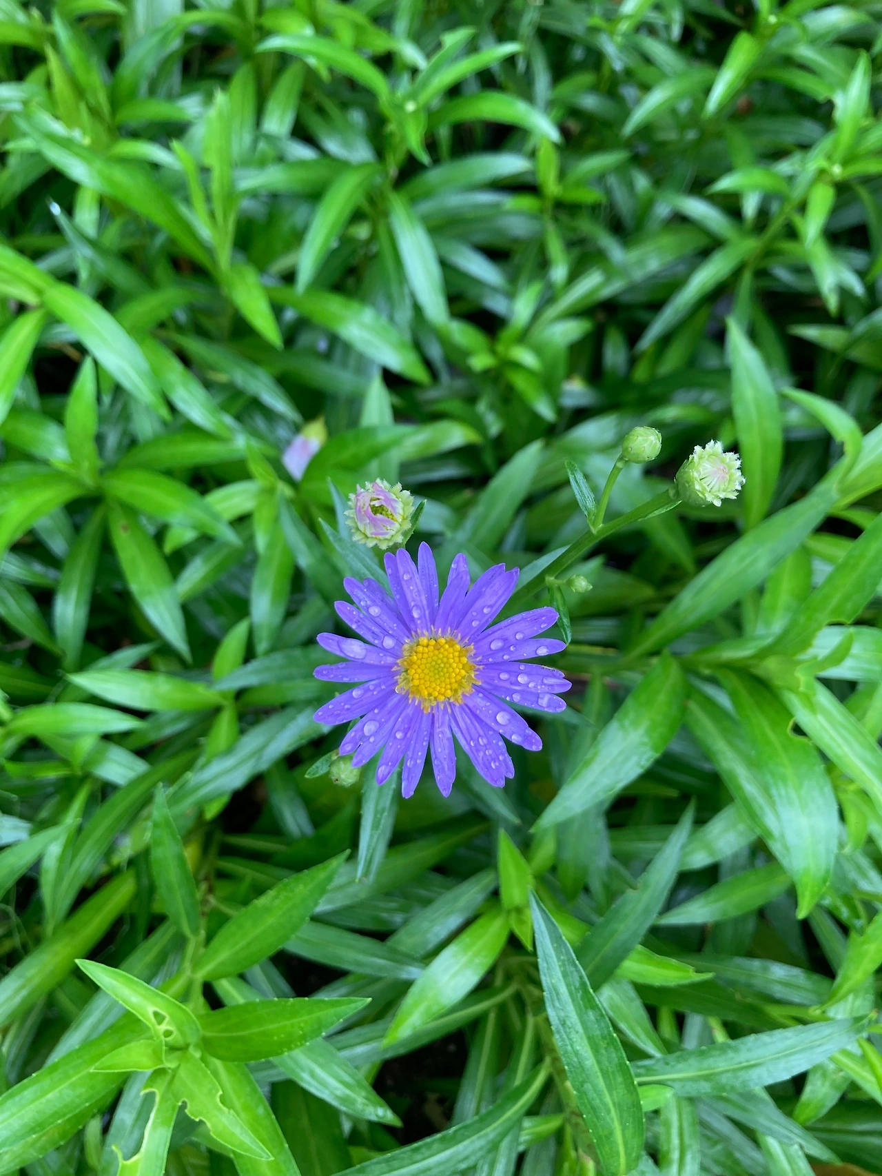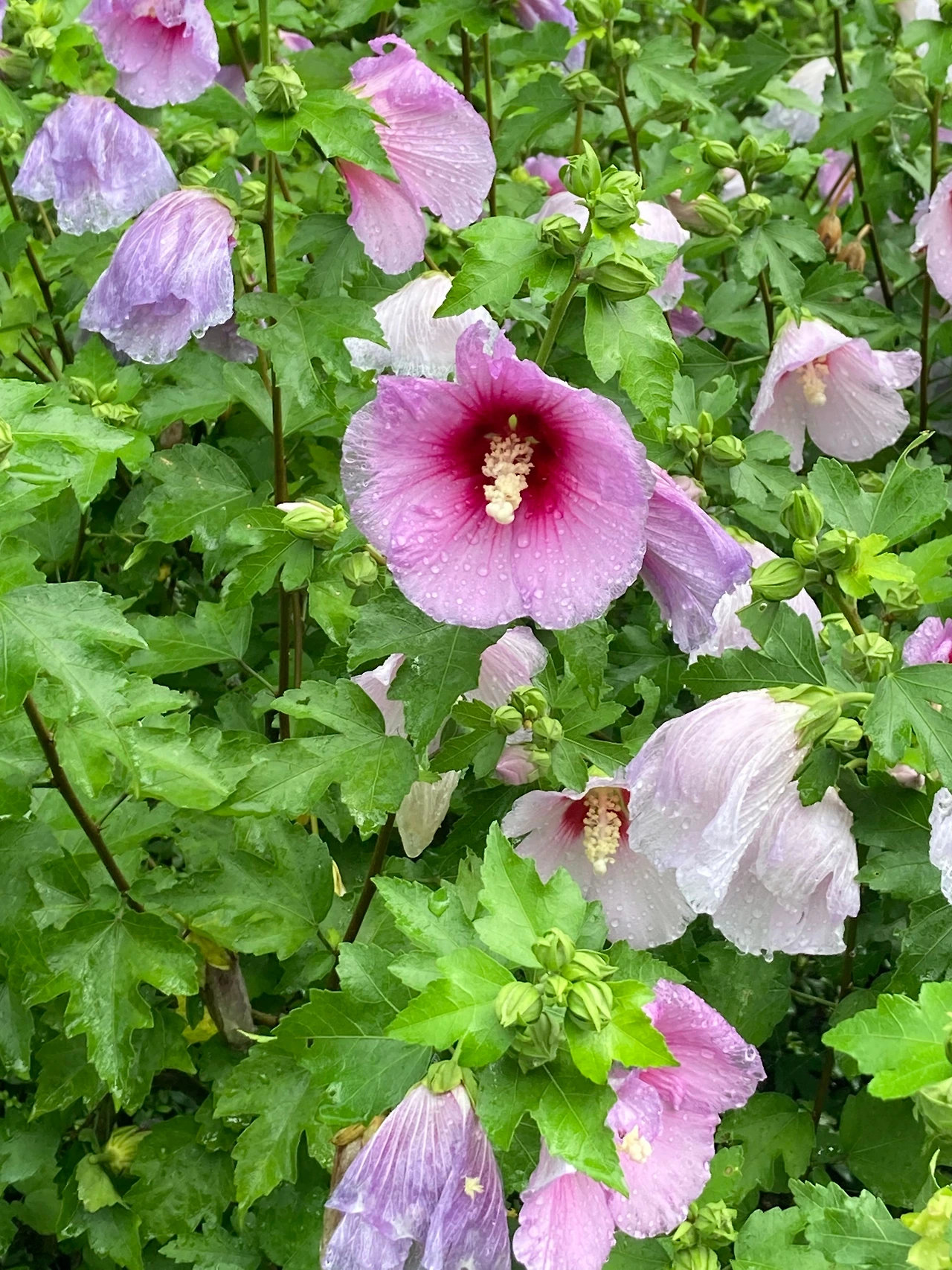 7월, 빗방울을 머금고 있는 수목원의 여름꽃들. 왼쪽 위부터 수국, 알리움, 벌개미취, 무궁화, 원추리꽃.