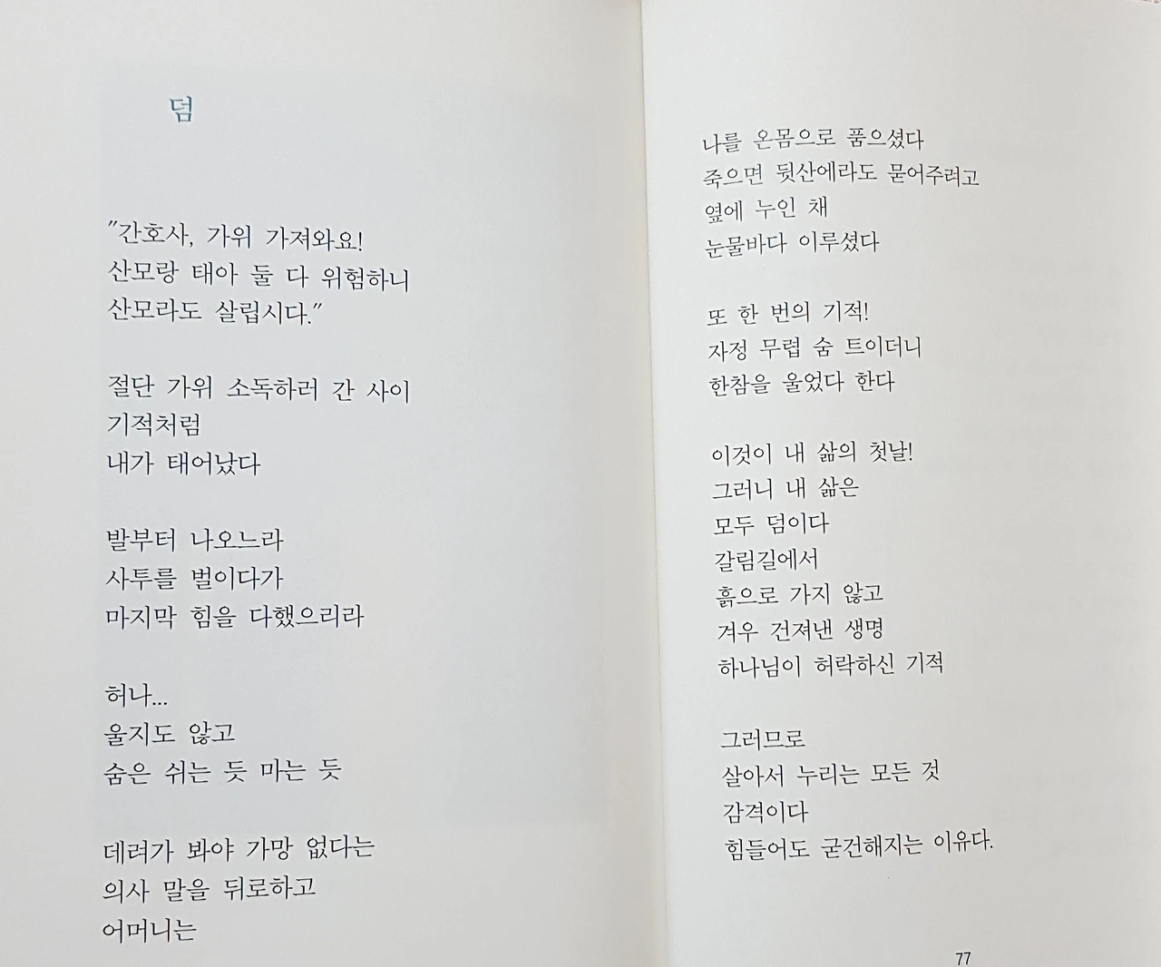 작가님의 탄생에 얽힌 감동적인 사연이다. 읽다 보면 눈물을 피할 수 없다.