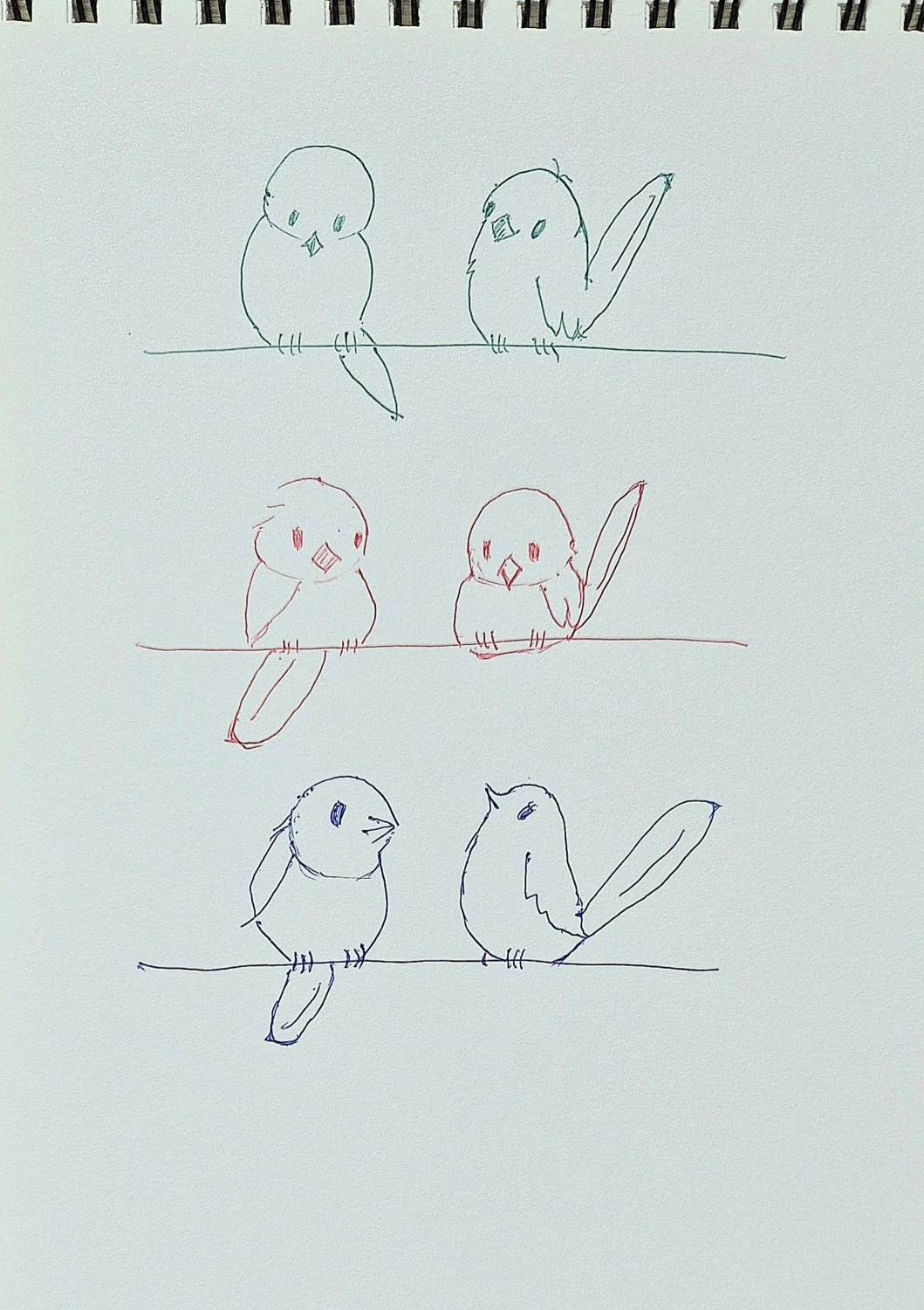 오늘은 시작(詩作) 메모를 남기는 대신 그림을 그려 보았습니다. 공책 표지의 새를 따라 그렸습니다.