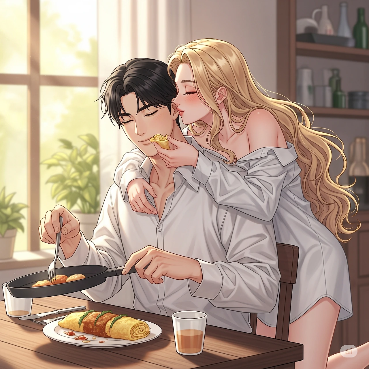 나와 너 결국 돌아서지 못할 강을 건넜네너가 내여자가 되었고나는 너의 남자가 되어버린 상황아침에 일어나 부지런히 음식 준비하는 나넌 여유롭게 기상하고 나오는데오직 나의 와이셔츠만 걸쳤네내가 유심히 쳐다보니뒤에서 백허그하며남자 옷 입고 백허그 하는게 로망이었다네만든 계란말이 입에 넣어주니맛있다고 뽀뽀해주네밥상 차려 놓고 같이 앉아 행복하길 기도한후너도 한입 나도 한입 나눠 먹으며 행복해하네