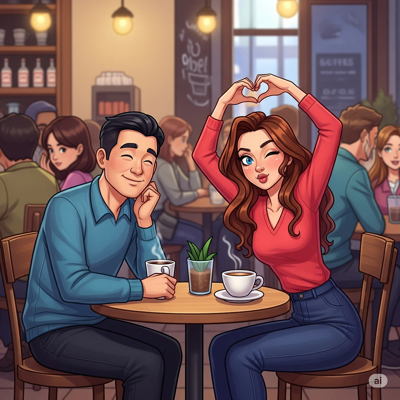 사람 많은 커피숍내 옆에 앉겠다는 너그냥 거기 앉아 있으라고 만류하니너는 삐쭉거리는구나기지개 피는것 처럼 하더니여기저기 두리번 거리다가머리 위로 하트 그려 보여주고 윙크하네나 당신이 너무나 좋아 미치겠어 하며내 옆으로 와서 앉아있길 애원하네