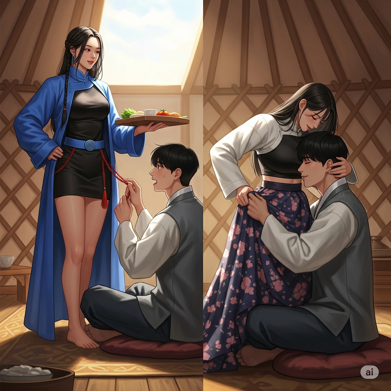 얼른 방으로 들어가 치마를 가져다 입혀주고 너와 행복한 아침을 맞이했네