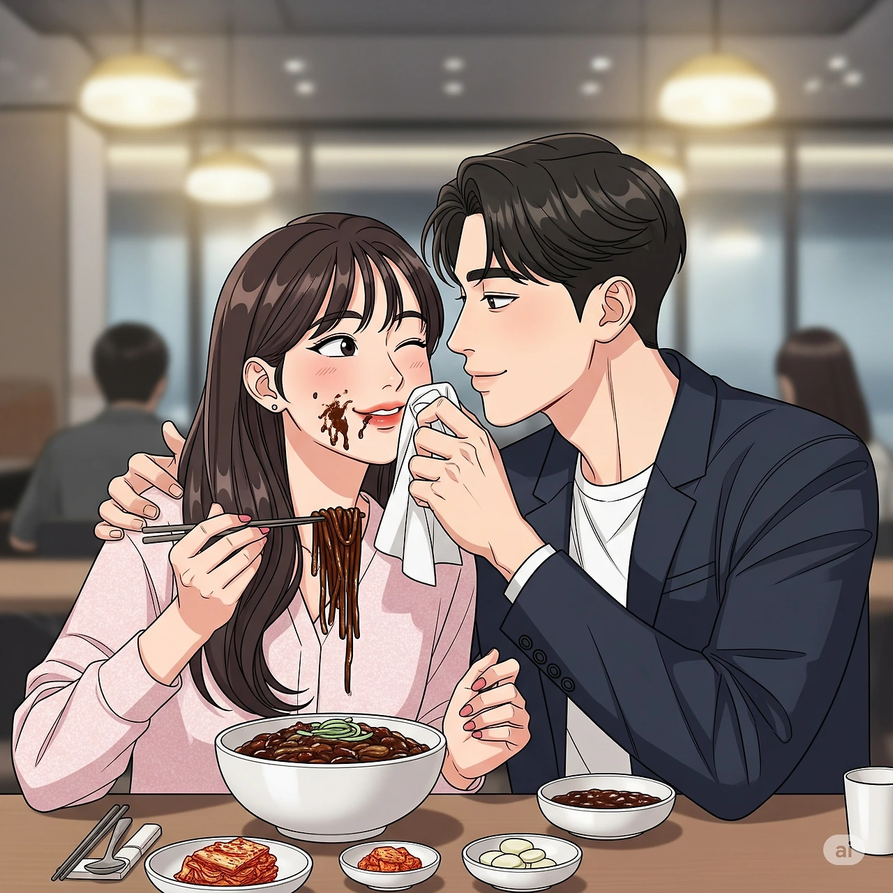입에 묻은 밥풀과 김치국물 닦아주고
