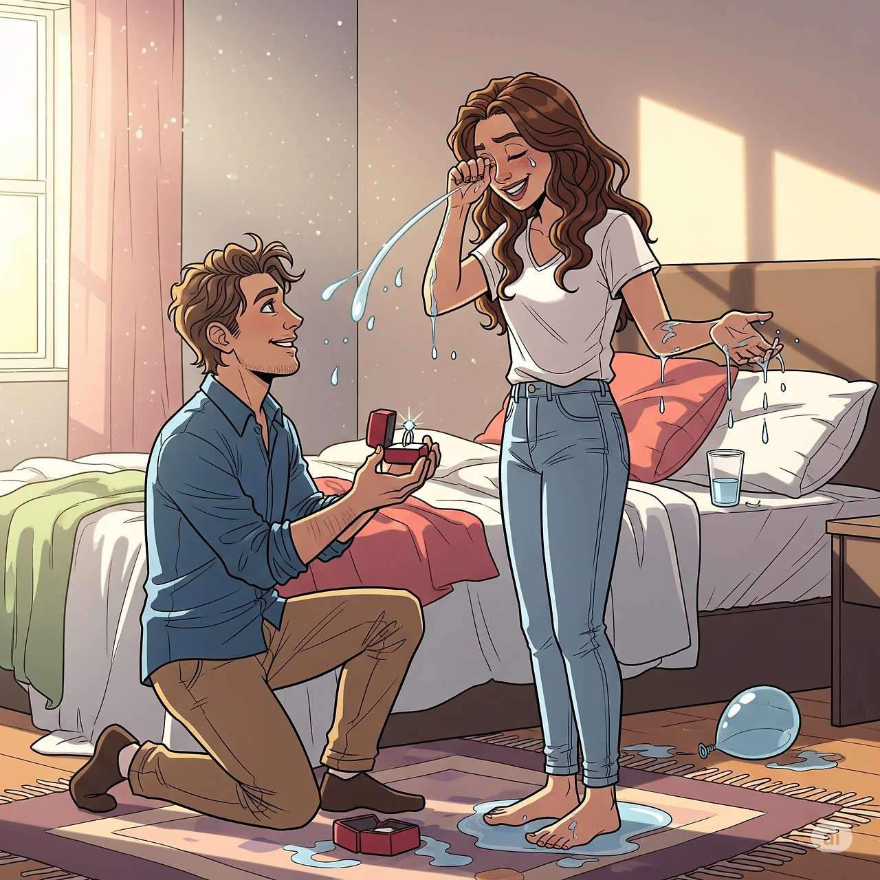 자 여기 끼워주고 목에 걸어줘 말하며 행복해하네