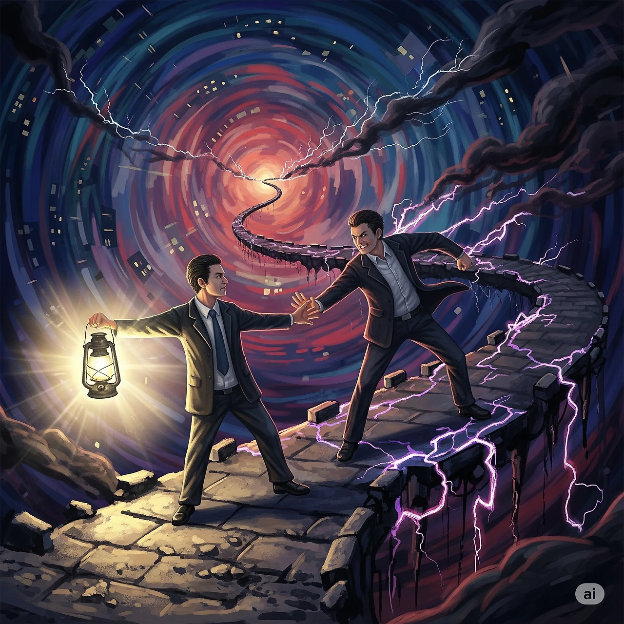 칼을 상대방에게 휘두른다