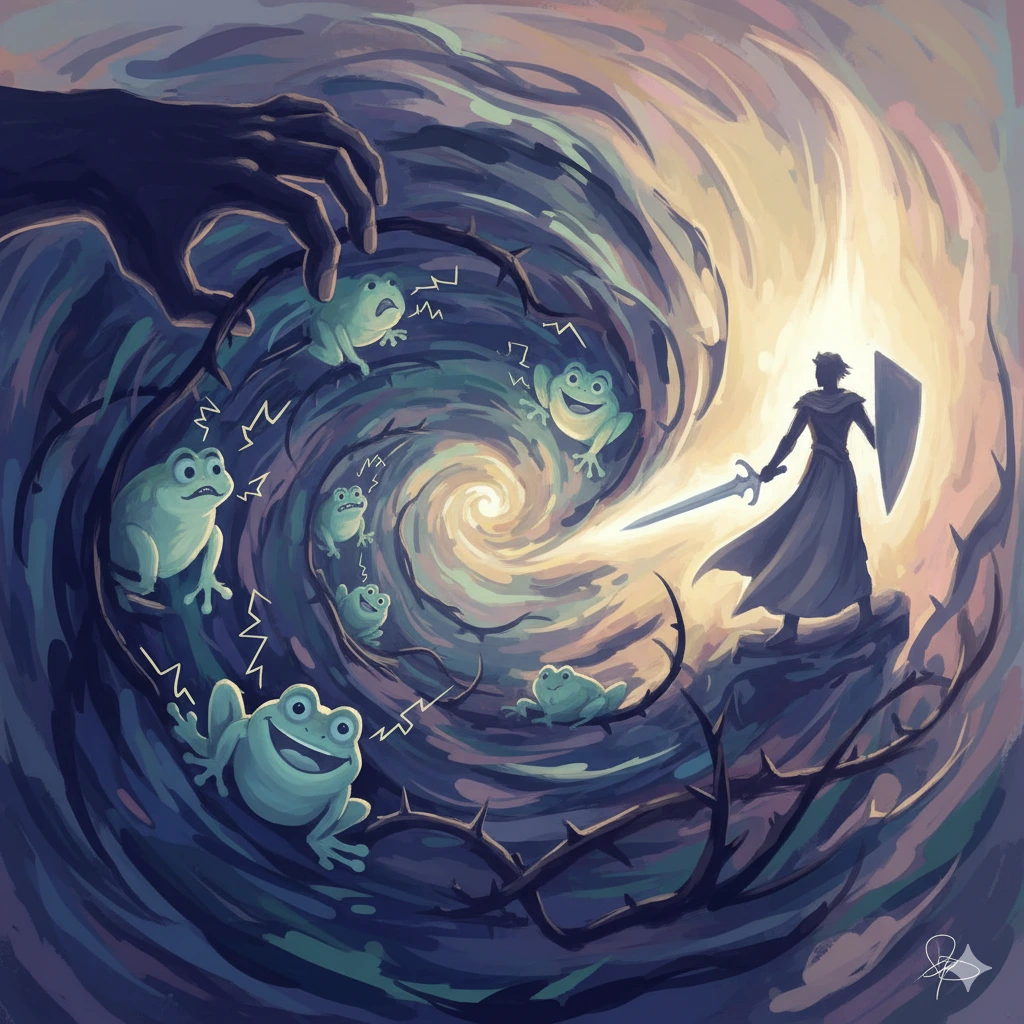나올래야 나올수가 없고한쪽에선 놓아주지 않고또한 온갖 협박을 일삼고또한 온갖 수치심을 안겨주고서로가파탄의 수렁에서나가도록 하지 못한다네.마치개구리처럼맨 처음에는 좋아라 했지만조마조마하고쾌락과 짜릿함이 있었지만나중에는자기가 죽을 줄도 모르고더욱더 기입숙히 빠져들어 갔구나