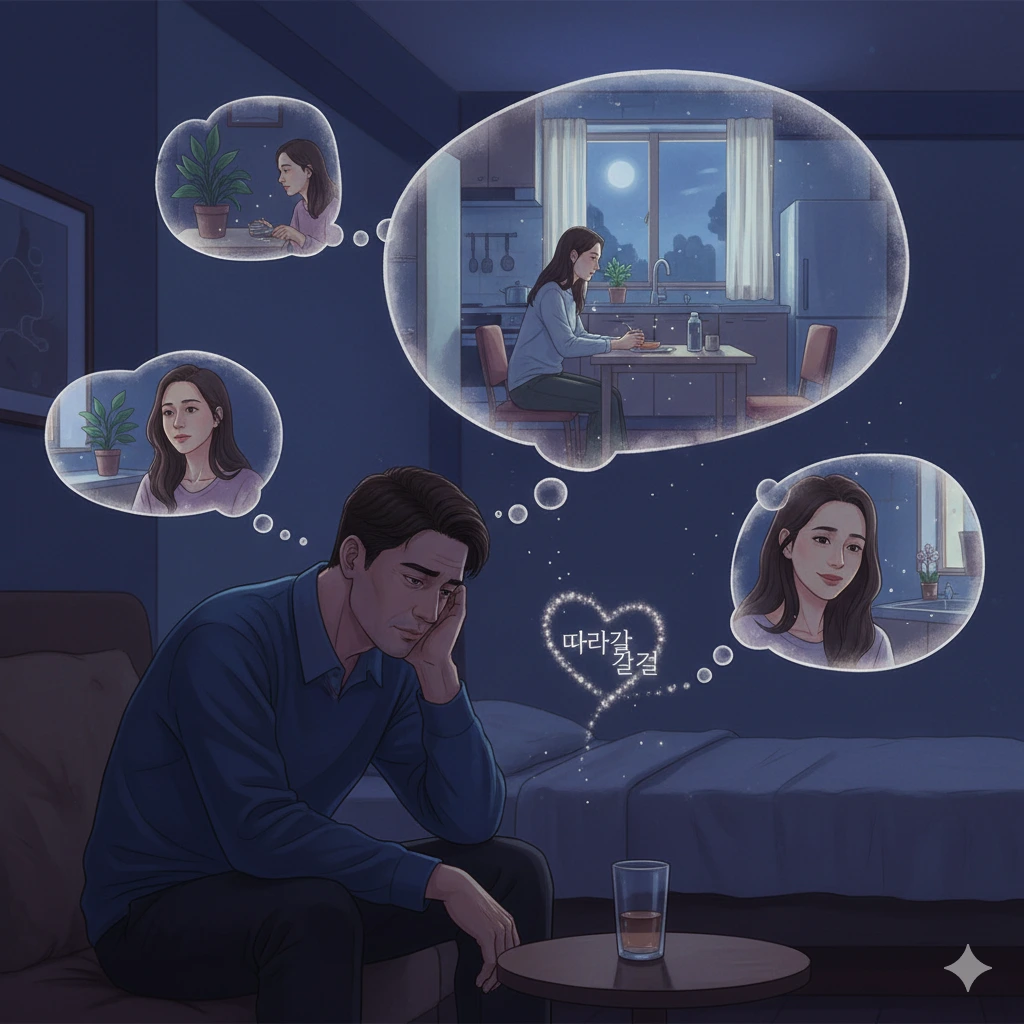 따라갈 걸—혼잣말이 식탁에 남아 있었다.