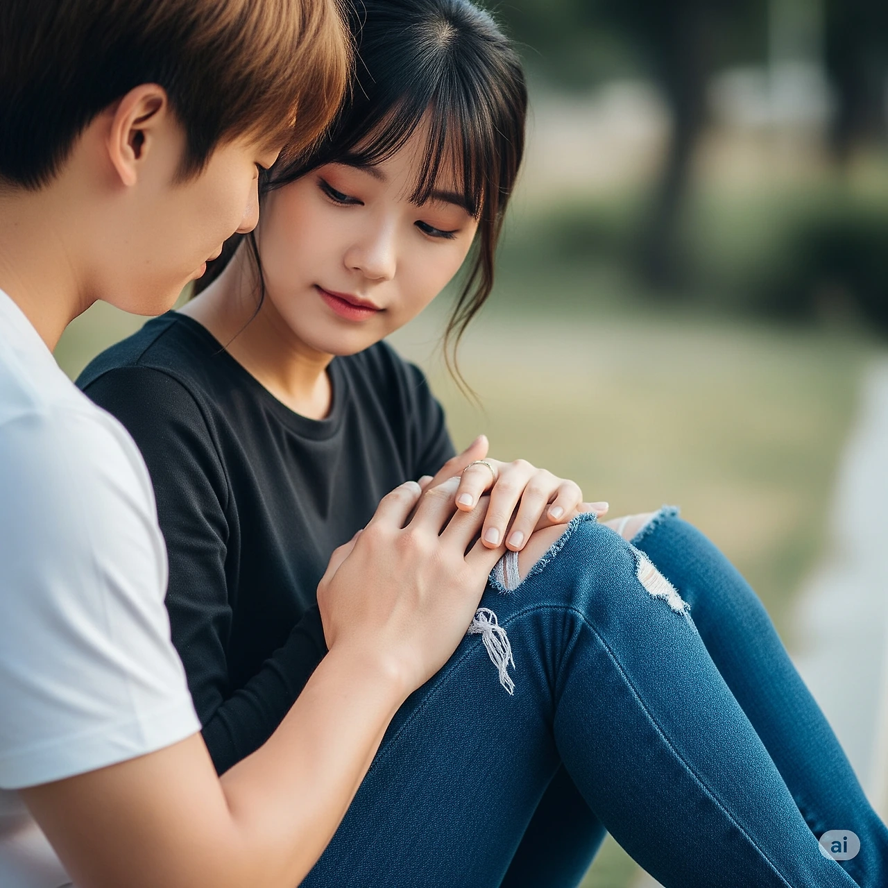 너의 무릎에 손을 얹으니