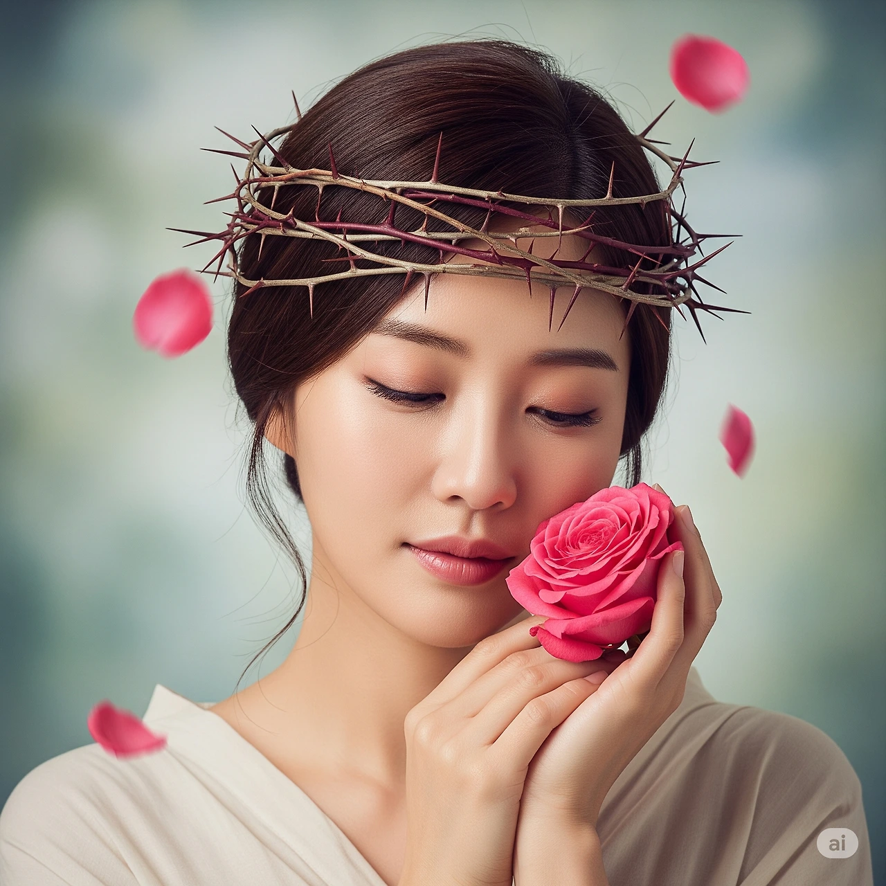독한 마음을 품고 살아가는지 장미꽃으로 가시를 감추고 온갖 어려움과 세상에 맞서 싸우며,
