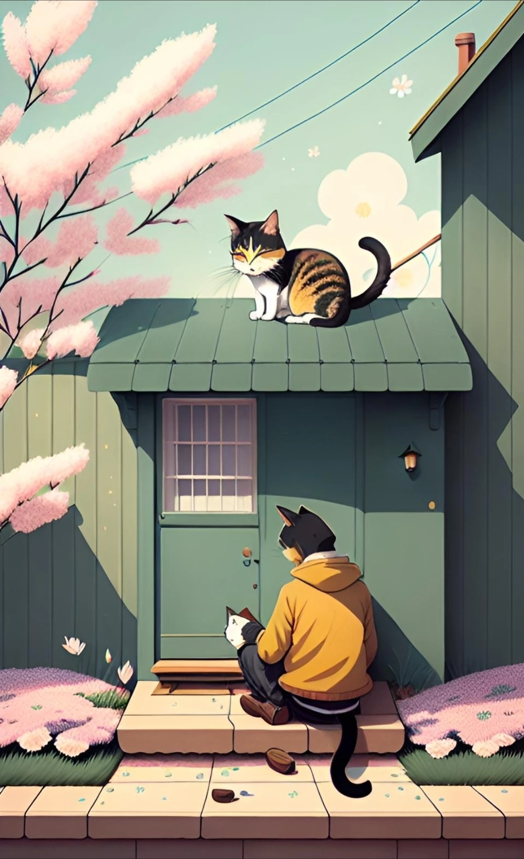 꽃 피는 봄에 길 고양이 뒷곁에 몸을 풀었네