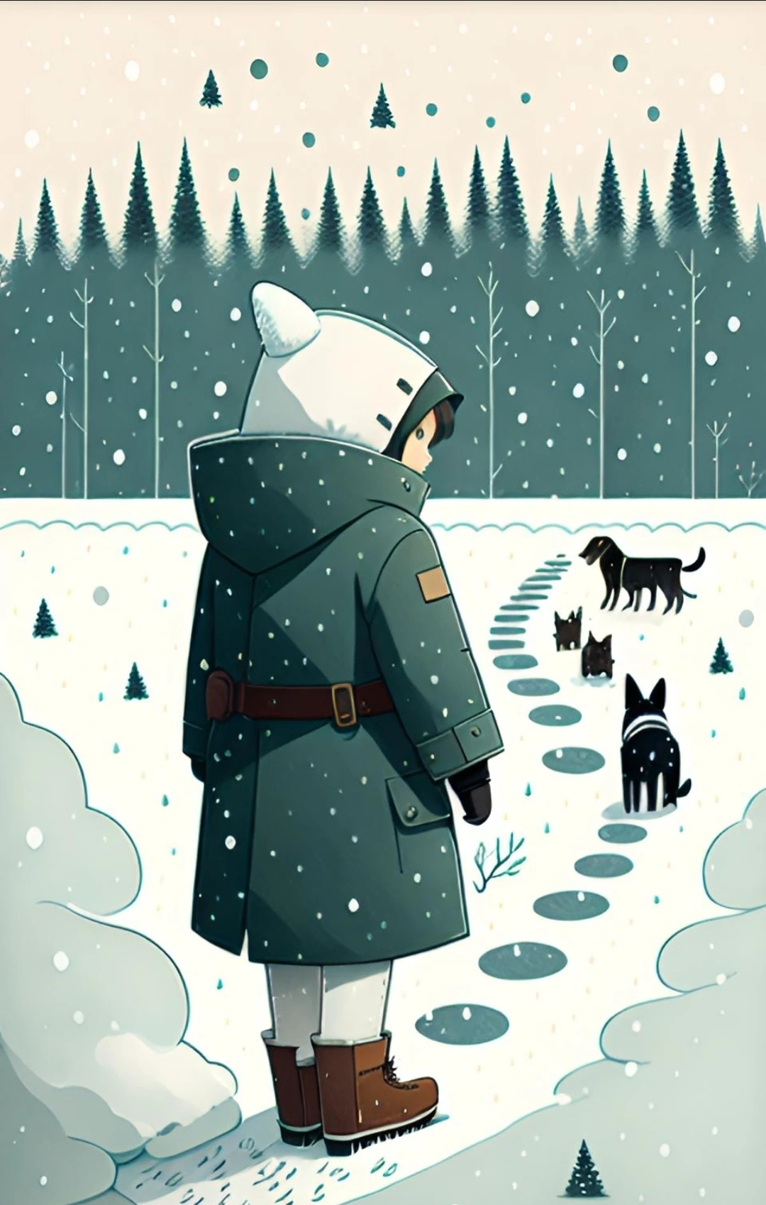 It's snowing. I see footprints. It's a dog.