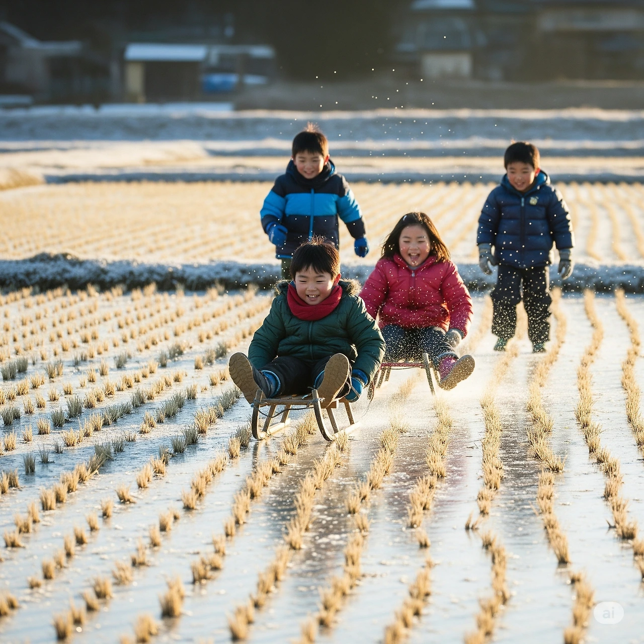 얼음이 좋다 논에서 썰매타는 아이들 마음