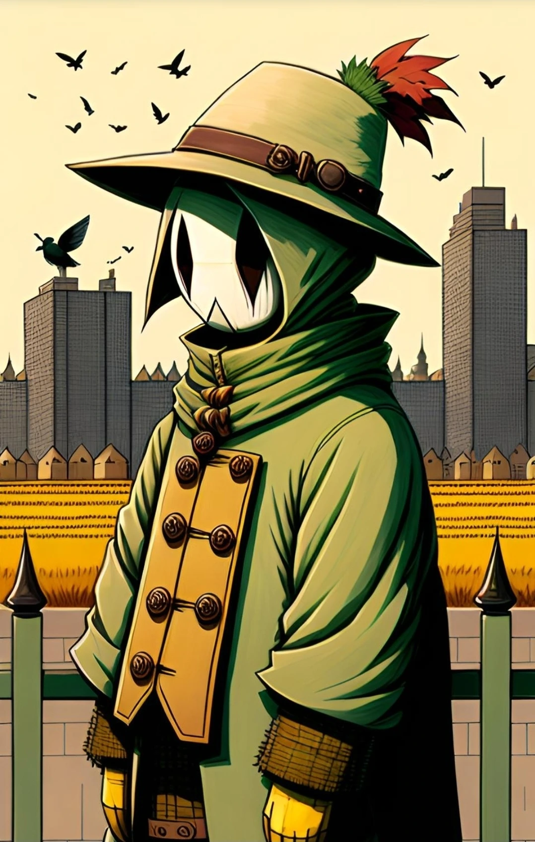 "Guarding the four seasons, through lonely and frightening days, that is my duty (scarecrow)."