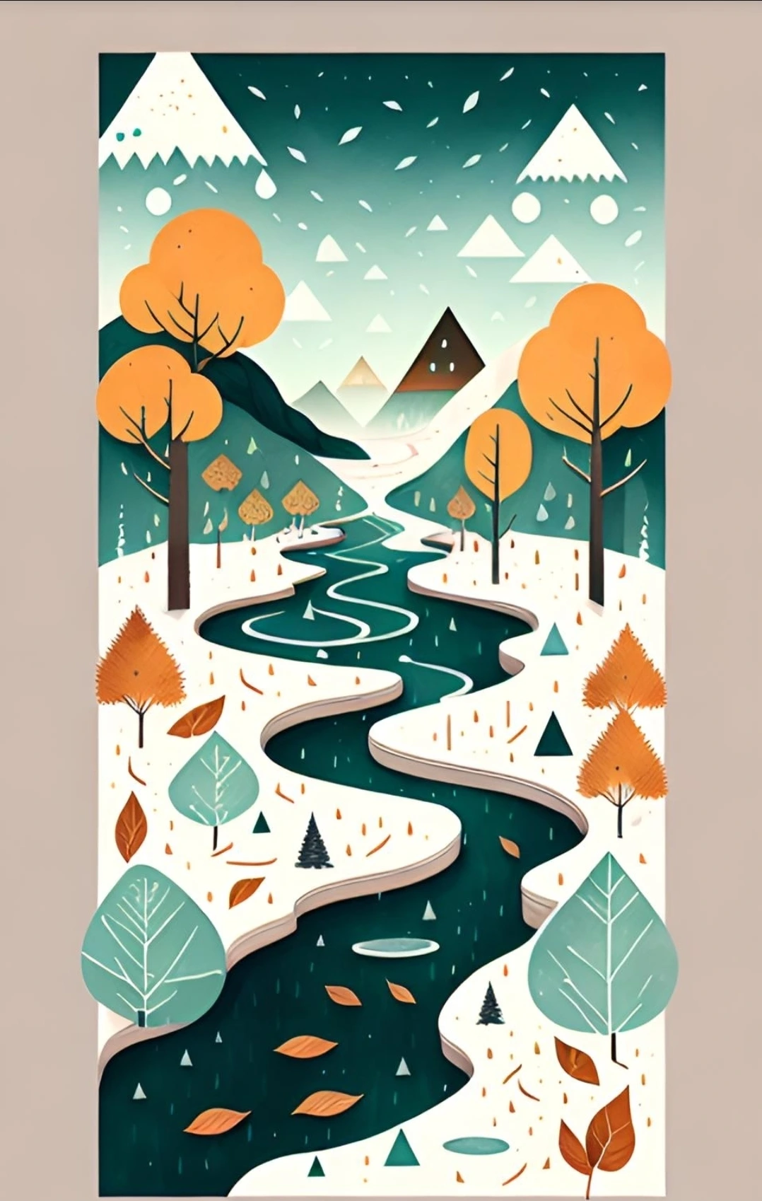 얼음속 물이 흐르고 지난세월 버텨온 색바랜 낙엽도 여행하네(봄)