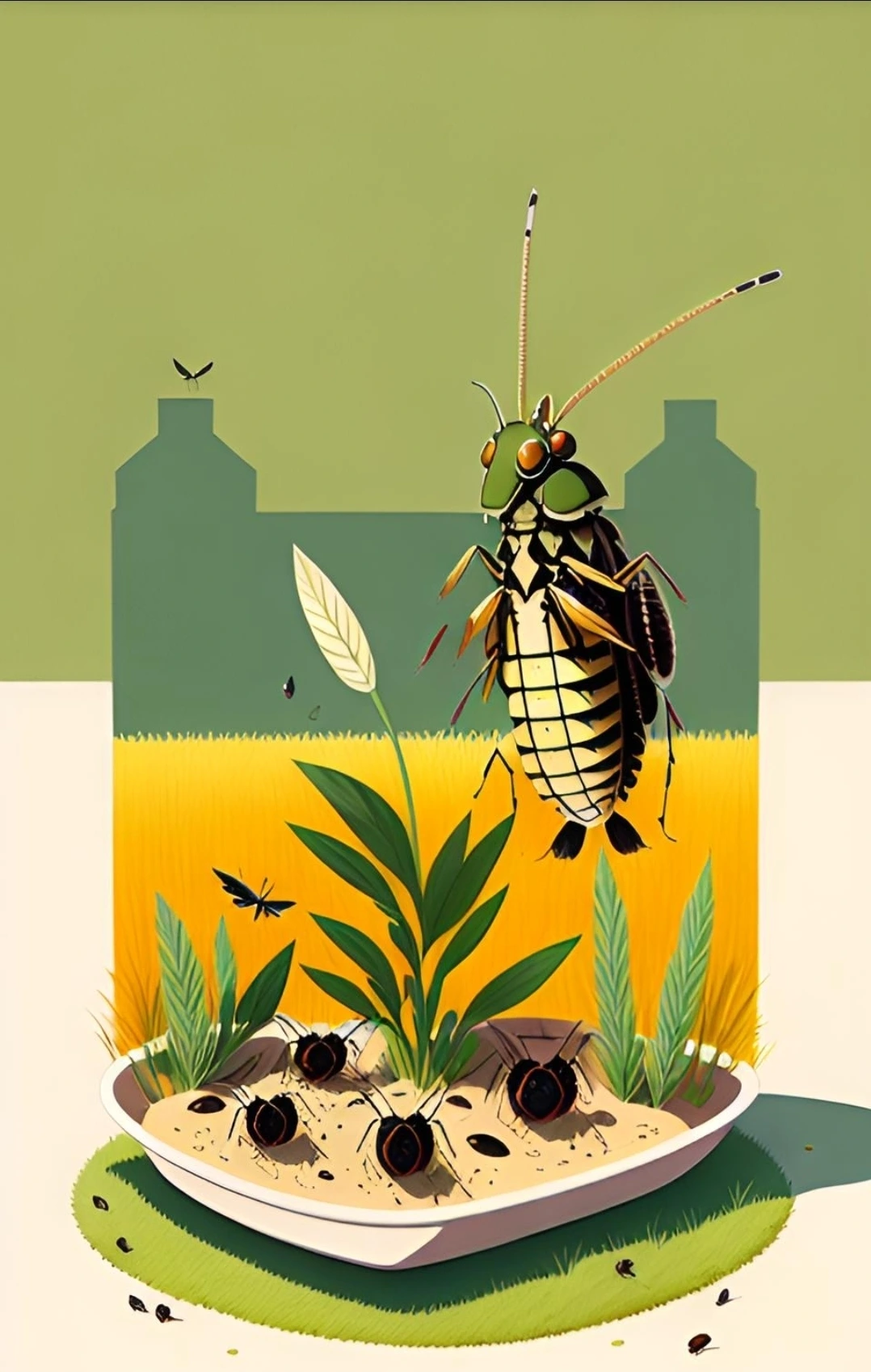 들판에 나가 메뚜기 잡고나서 맛나게 먹네