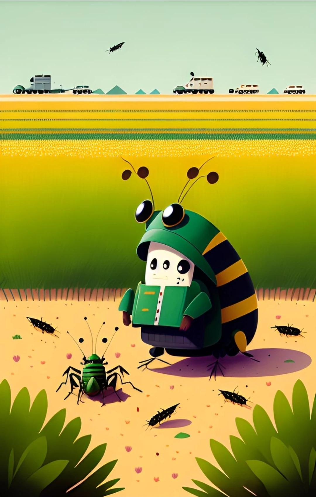 I went out to the field, caught grasshoppers, and then ate them deliciously.