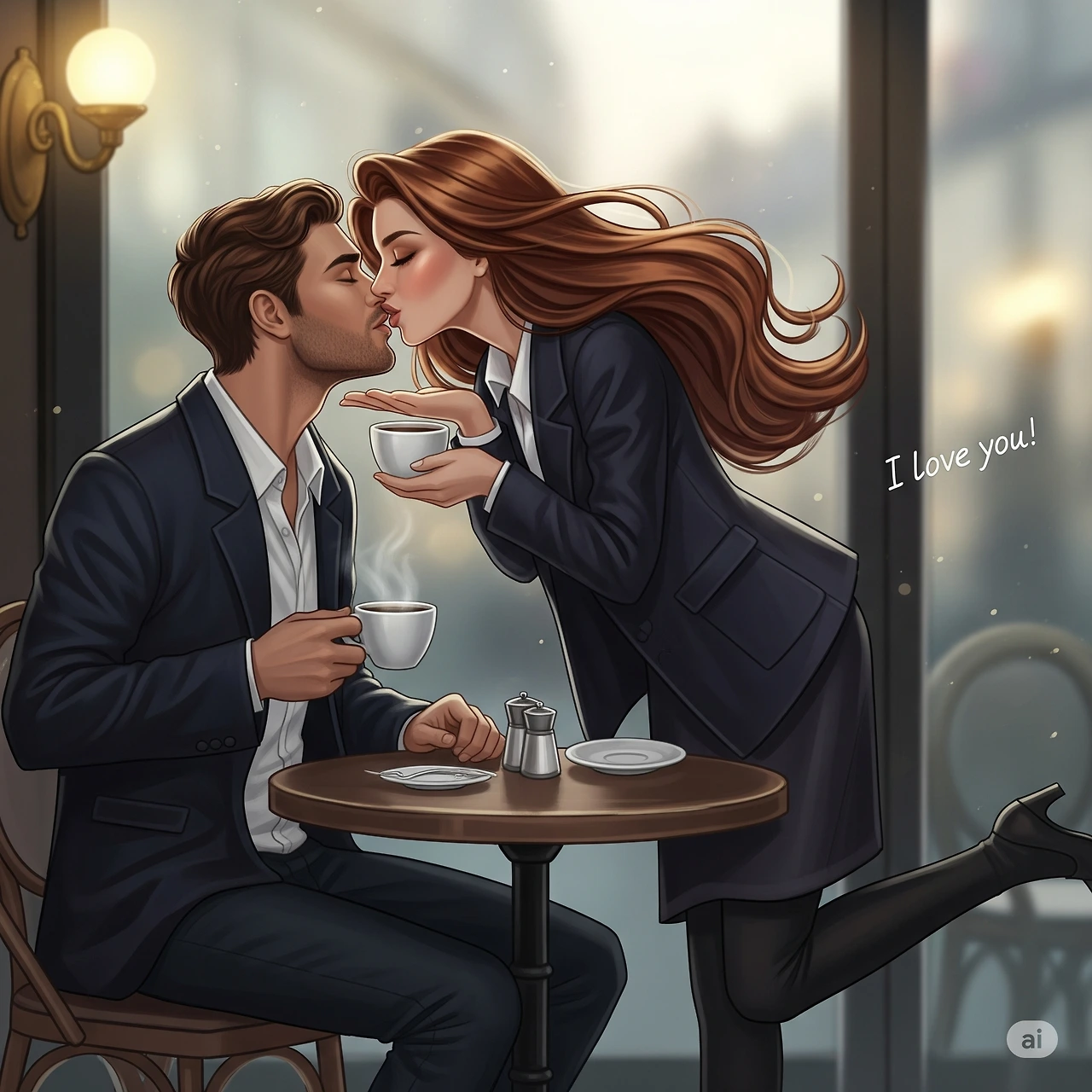 입술을 쭈욱 내밀어 키스를 찐하게 해 주며 행복해하네