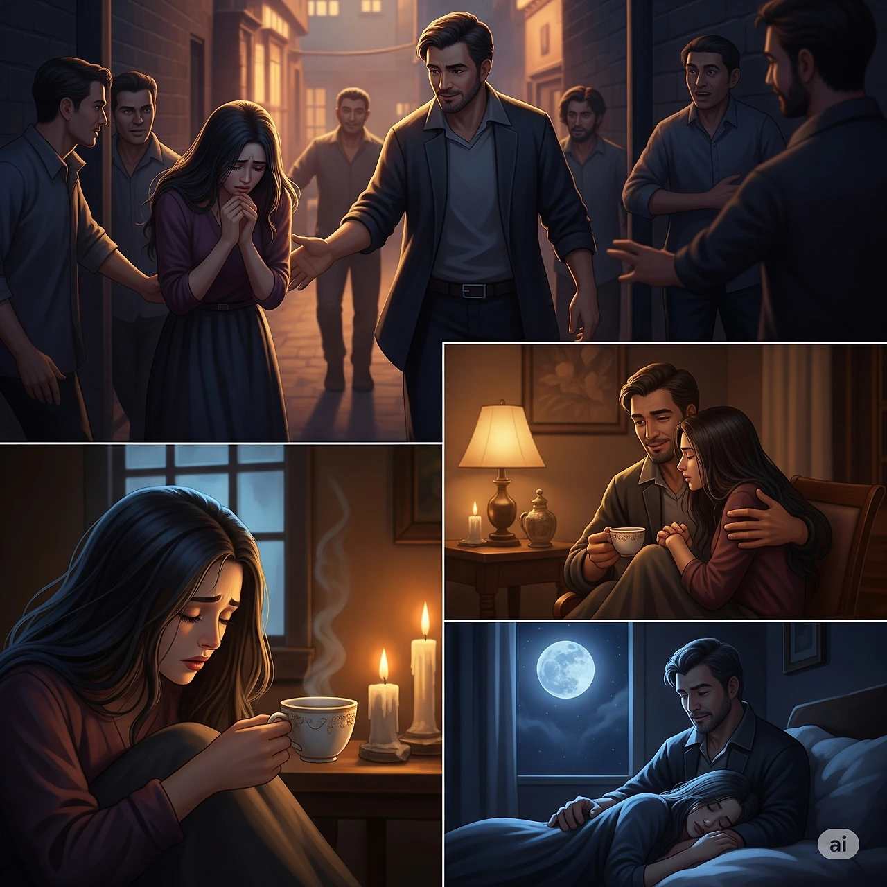 같이 밖으로 나와 따뜻한 티를 마시고 안정시키며