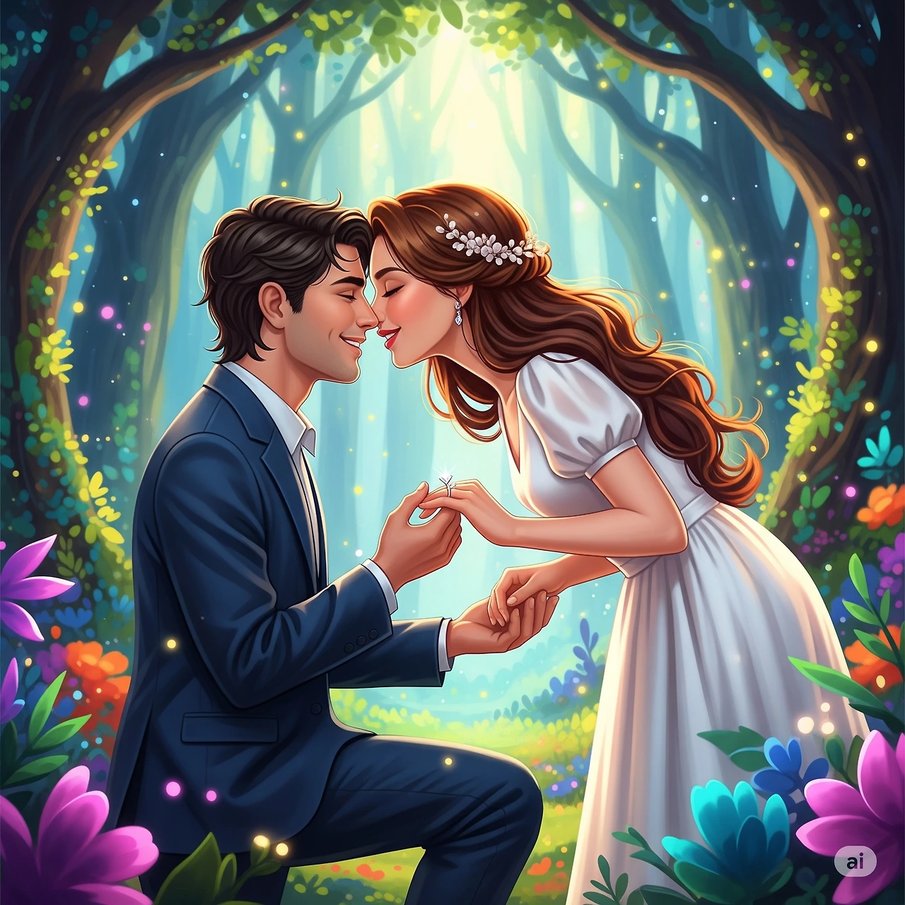 너에게 사랑한다 말하고 키스하며 반지를 끼워주니
