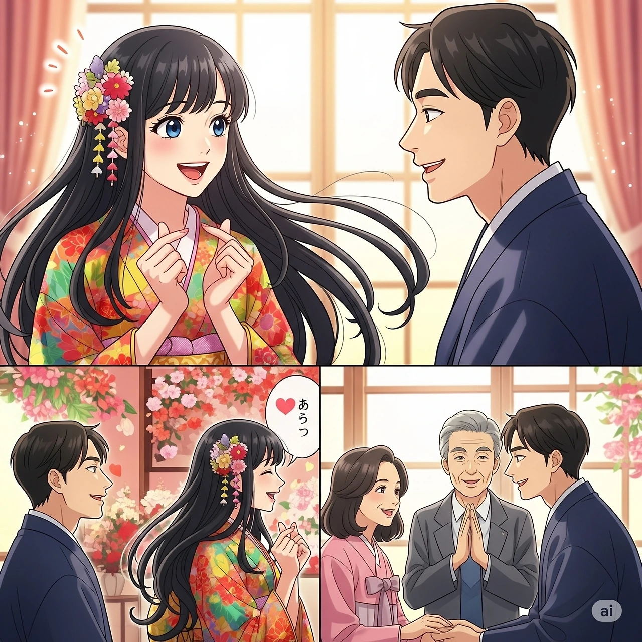 나를 대면하자행복하고 좋아서 어쩔 줄 모르는 너손으로 하트표시양볼에 대고 밝은 미소천진난만 내 마음 훔쳐가네서로가 마음에드니그날로 너의 부모를 만나고정중히 인사하고딸을 달라 부탁하니만족하고 들뜬 모습으로당장 데려가라말씀하시네