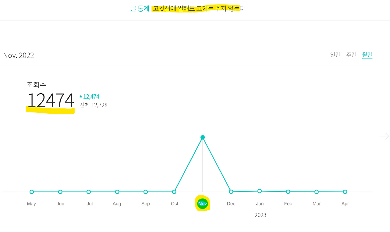 두어 번 만뷰를 찍어보니 살짝 욕심도 생기고 부담감도 생겼었는데, 한 달 쉬어서 그런지 이제는 꾸준히 글을 쓰고 싶다는 생각이 더 든다. 마음 한편엔 여전히 다음 메인 노출을 꿈꾸며 오늘도 끄적여 본다.
