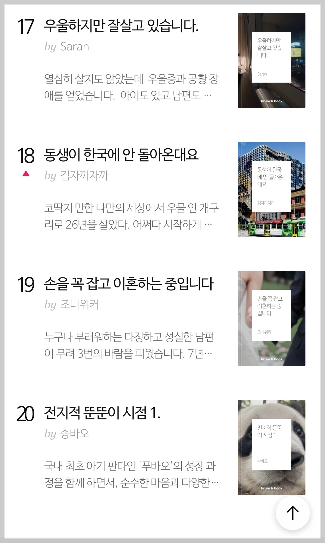 '오늘이 작가' 와 ' 완독률 높은 브런치북'에 도즈언~!!