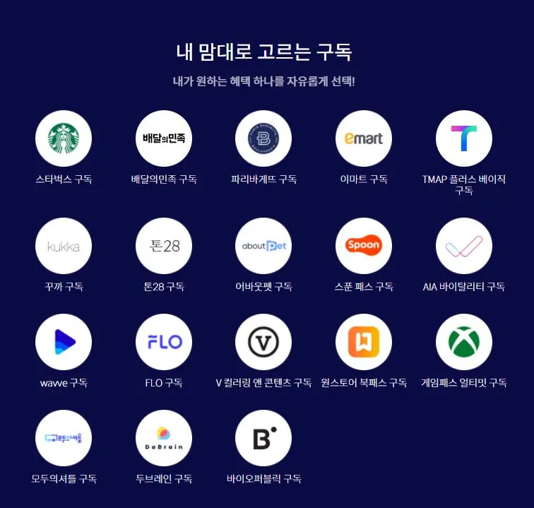 우주패스를 통해 구독할 수 있는 다양한 상품들_출처: SKT 구독 서비스