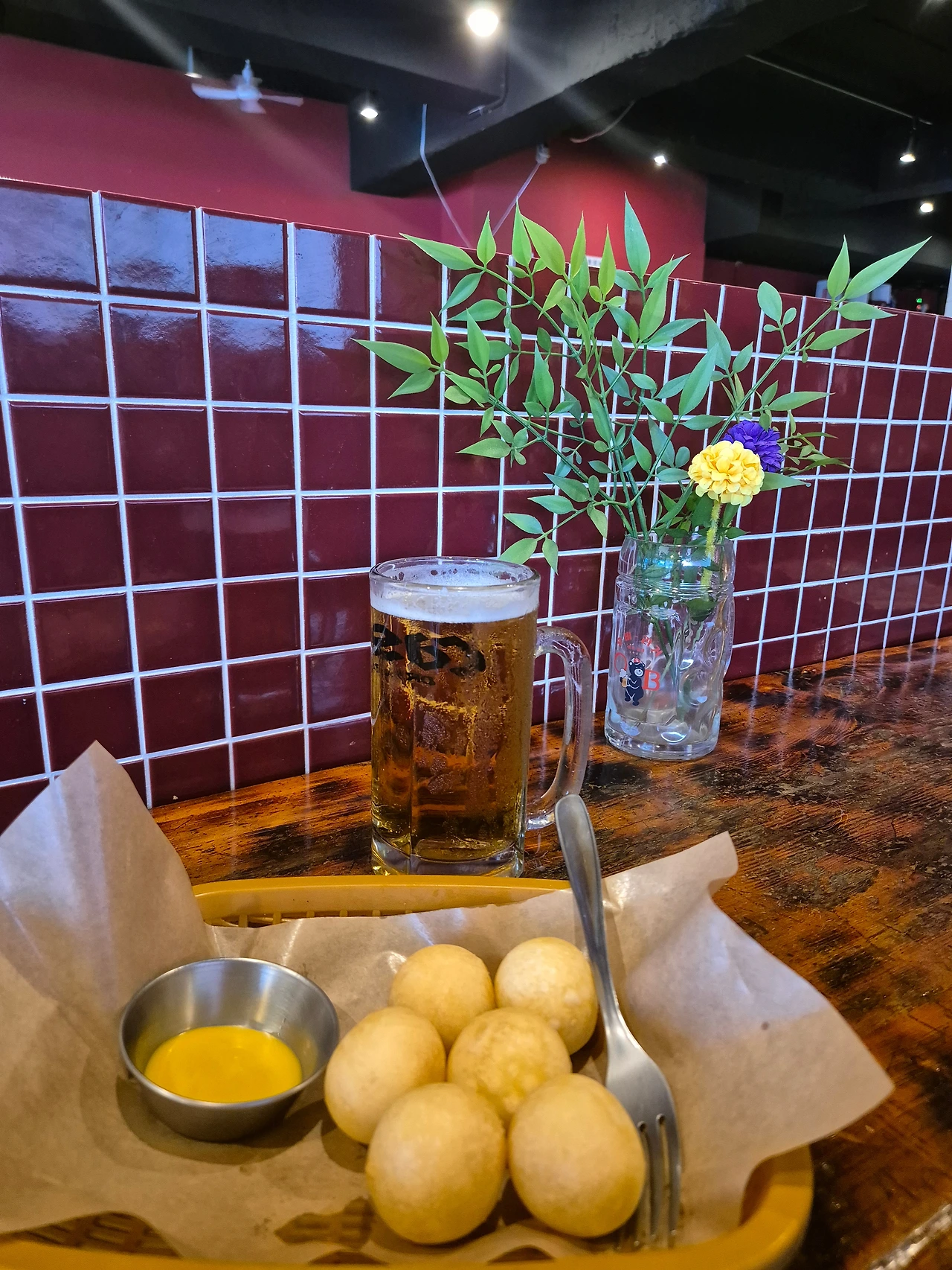 마지막잔은 치즈볼과 함께... 기분이 왕왕 좋아진 나는 지난번에 쓰다만 브런치 글도 마무리하고 이 가게도 소개하리라 마음먹는다. 가성비도 좋고 맥주맛도 좋은 익산 엘베강. 우연이라도 그 지역을 스칠 일이 생기신다면, 한번 가 보실 것을 감히 추천드린다 :)