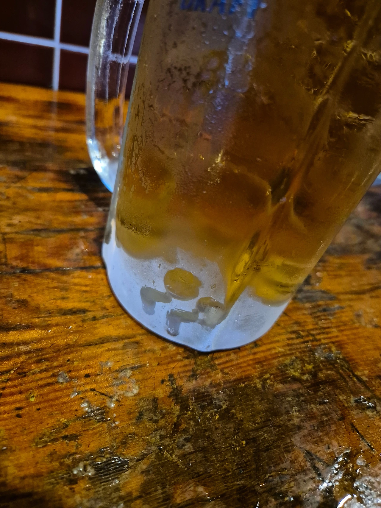 신나서 사진을 찍었다. 근데 음? 얼음잔으로 달라고 부탁드렸는데 별로 얼음잔이 아니네?라고 생각한 게 기억난다. 뭐 아무렴 어때.. 하고 한 모금을 들이켰고...