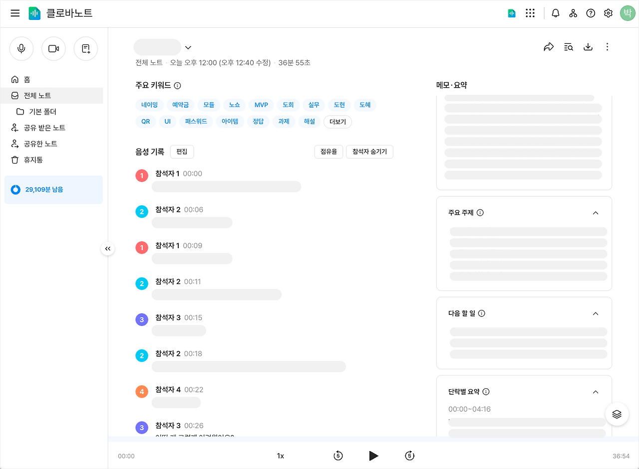 그 친구의 이름은 네이버 클로바노트. 내 목소리를 듣고, 대화를 기록하며, 말의 맥락을 포착해 다시 ‘텍스트’라는 형태로 내게 돌려주는 존재다. 이 도구가 없다면, 나는 하루가 끝난 후 무수한 작업물들을 앞에 두고 “그때 뭐라고 이야기했더라…” 하며 기억의 퍼즐을 맞추고 있었을 것이다.