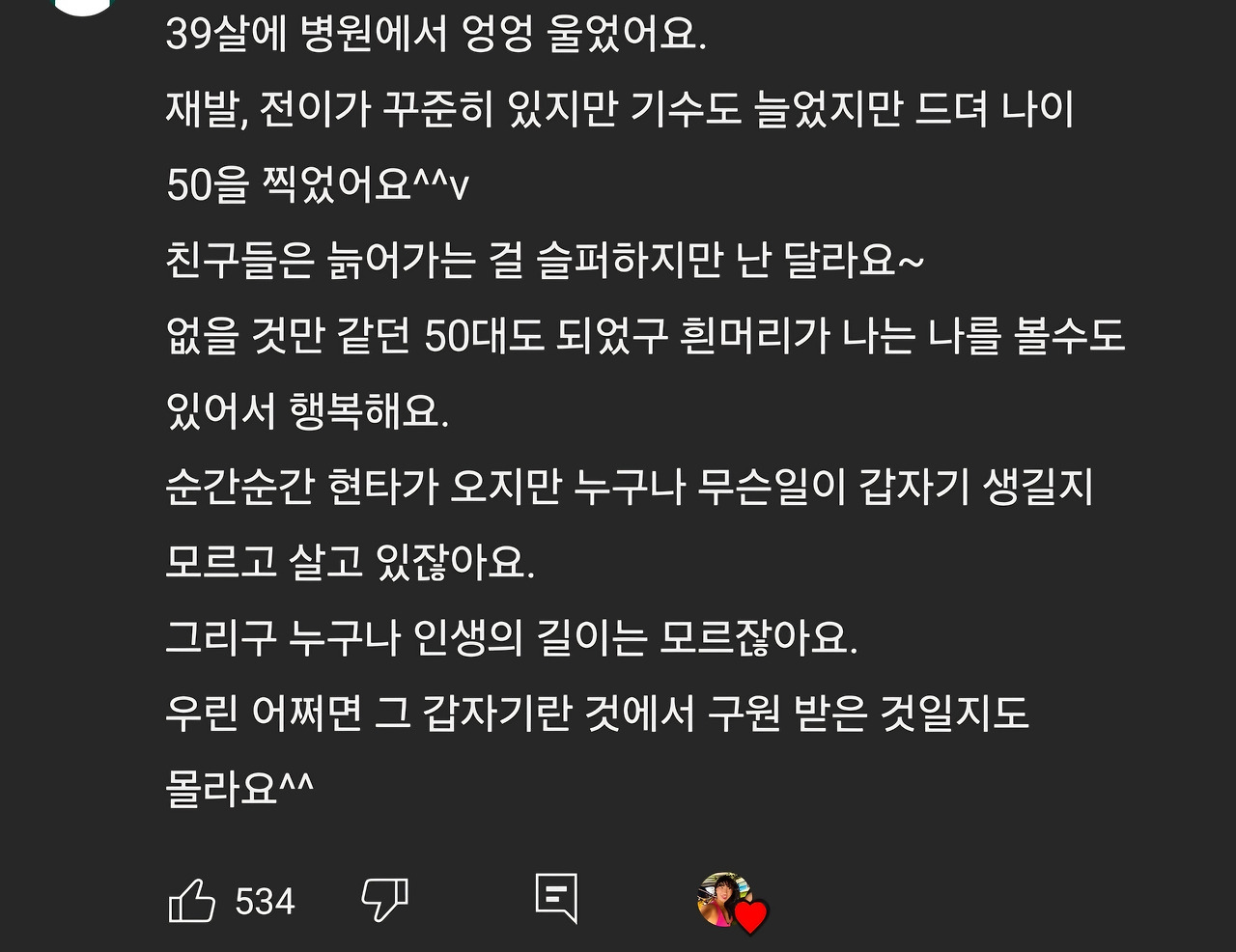 희망을 주는 그런 댓글들을 찾아서 마음에 새기거나