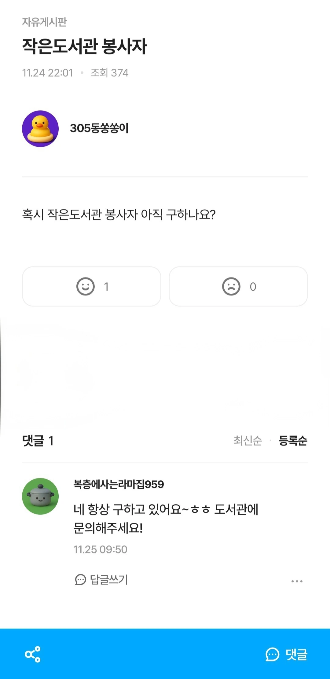 아파트 소통 공간에 글을 올리고 답변을 받고