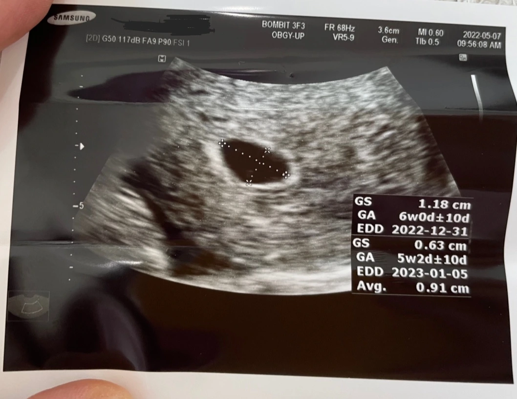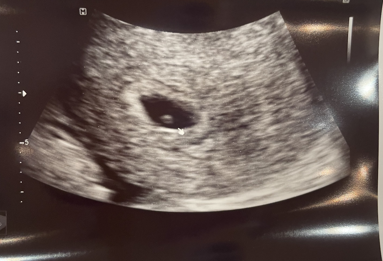 아직 아기는 안 보이는 시기로, 2주 뒤에 다시 내원하면 아기를 초음파로 확인할 수 있고, 심장소리를 들을 수 있다고 한다.
