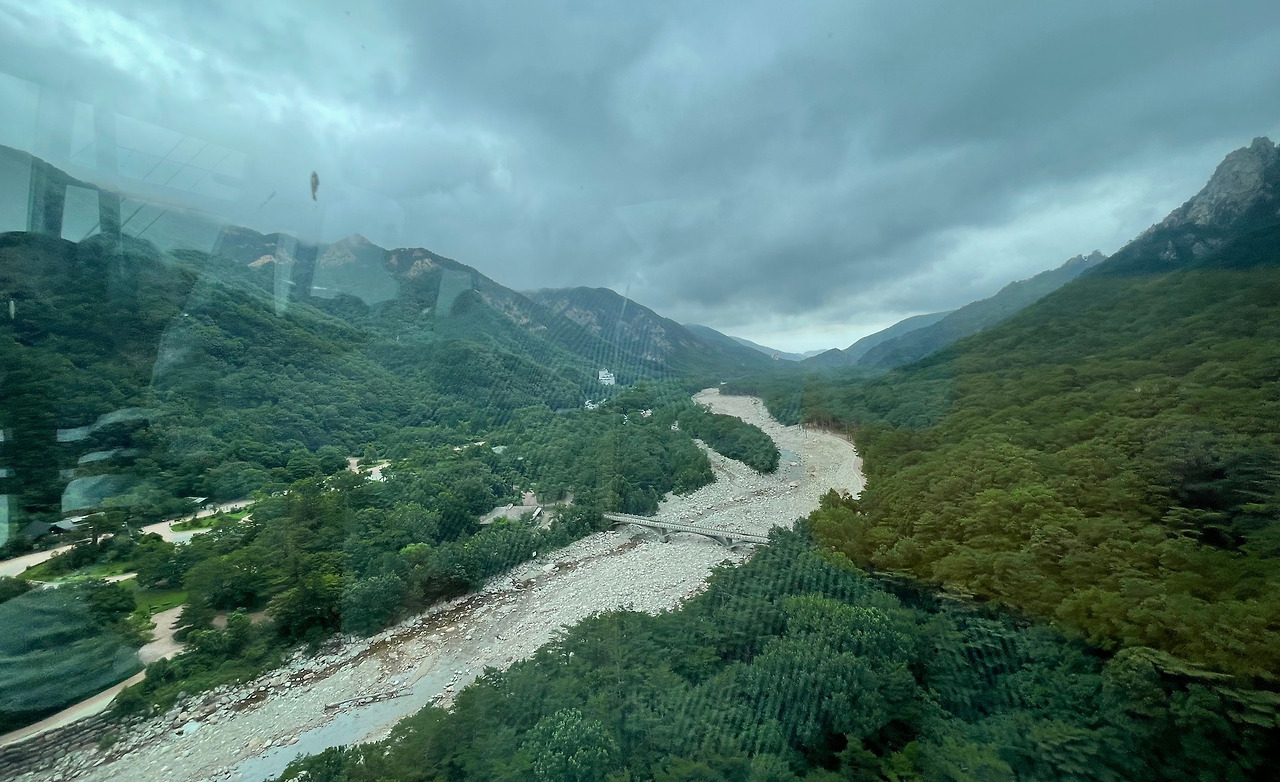 우리가 첫 번째로 향한 목적지는 설악산 케이블카였다. 우리 부모님의 추천 여행지로, 50명 정도가 한 번에 탑승하는 대형 케이블카를 타고 3~5분 정도 왕복 탑승한다. 이 날은 정상에 안개가 껴서 전망이 하나도 보이지 않았는데, 그래도 짧은 시간 동안 케이블카에서 내려다본 설악산 풍경이 꽤나 멋있었다. 오랜만에 느껴보는 산 병풍. 습기를 잔뜩 머금은 숲의 공기도 좋았다.